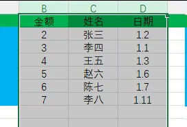 打开你的Excel表格,用鼠标点击你要排序的那一列的列标题,比如你想按收支金额排序,就点击【金额】这个列标题,整列就会被选中。