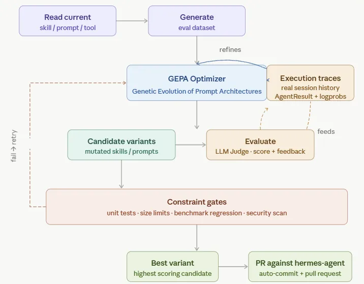 有了具体套路和维度结果,就可以使用GEPA来进行提示词优化, 进化出来最优的Skills。