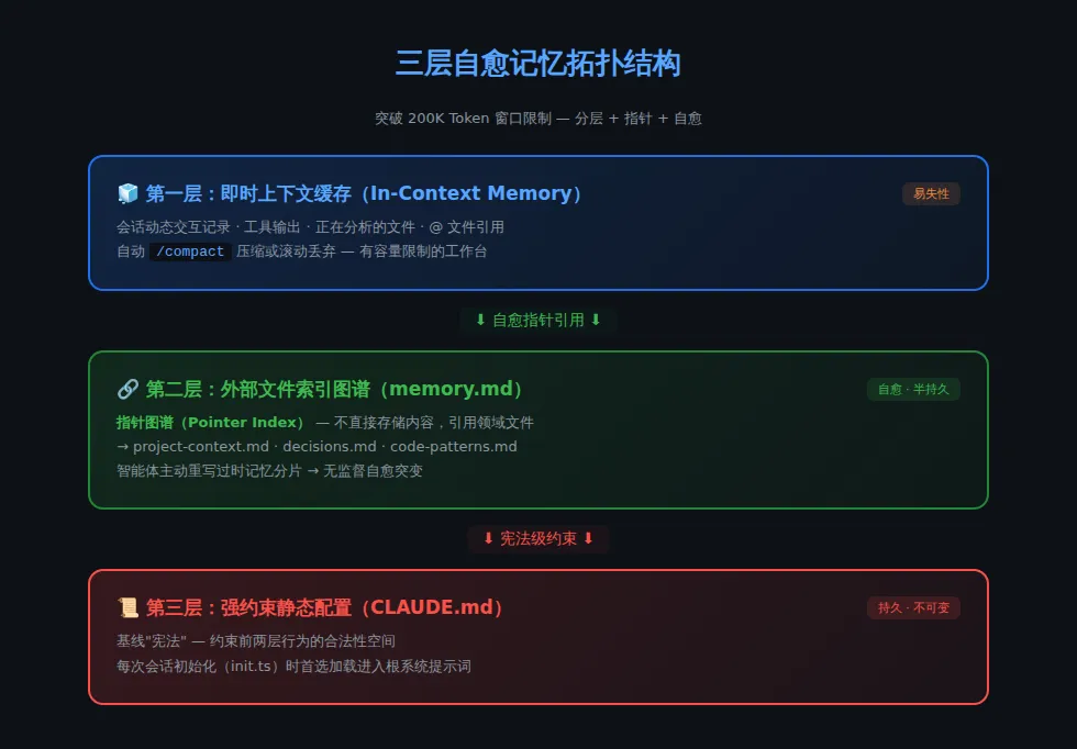2026年3月底,Anthropic 旗舰级 AI 编程智能体 Claude Code 发生了一次史无前例的源码泄露事件。此次事件不仅将一个长期被视为”黑盒”的商业 AI 产品架构彻底暴露在公众视野中,也为整个软件工程界提供了一份关于大语言模型(LLM)如何与操作系统、终端工具及本地代码库进行深度协同的完整解剖图。通过分析超过51.2 万行未混淆的 TypeScript 源代码,发现 Claude Code 并非简单的 API 命令行包装器,而是一个高度复杂的自主状态机与多智能体(Multi-agent)编排系统。在这一复杂的体系中,CLAUDE.md 文件充当了整个智能体生态系统的”持久化宪法”、上下文缓存的动态边界以及多层记忆架构的根节点。随着系统底层运行逻辑的揭秘,传统的”提示词工程(Prompt Engineering)”正在向”上下文工程(Context Engineering)”演进。本文将基于泄露源码,系统性拆解 Claude Code 的底层机制,详述其系统提示词的注入流与记忆拓扑结构,并提供一套深度优化的 CLAUDE.md 编写范式与团队工程最佳实践。