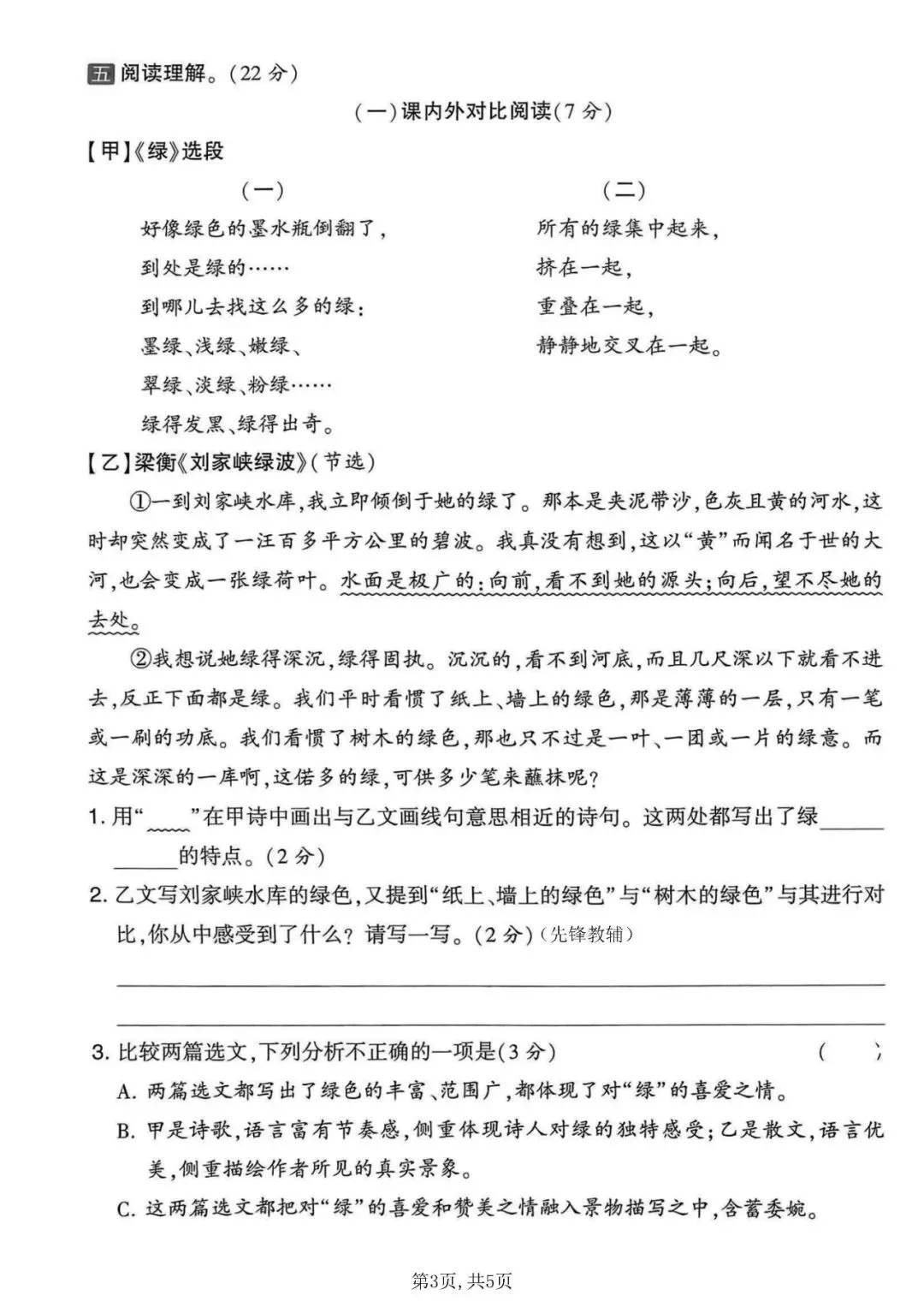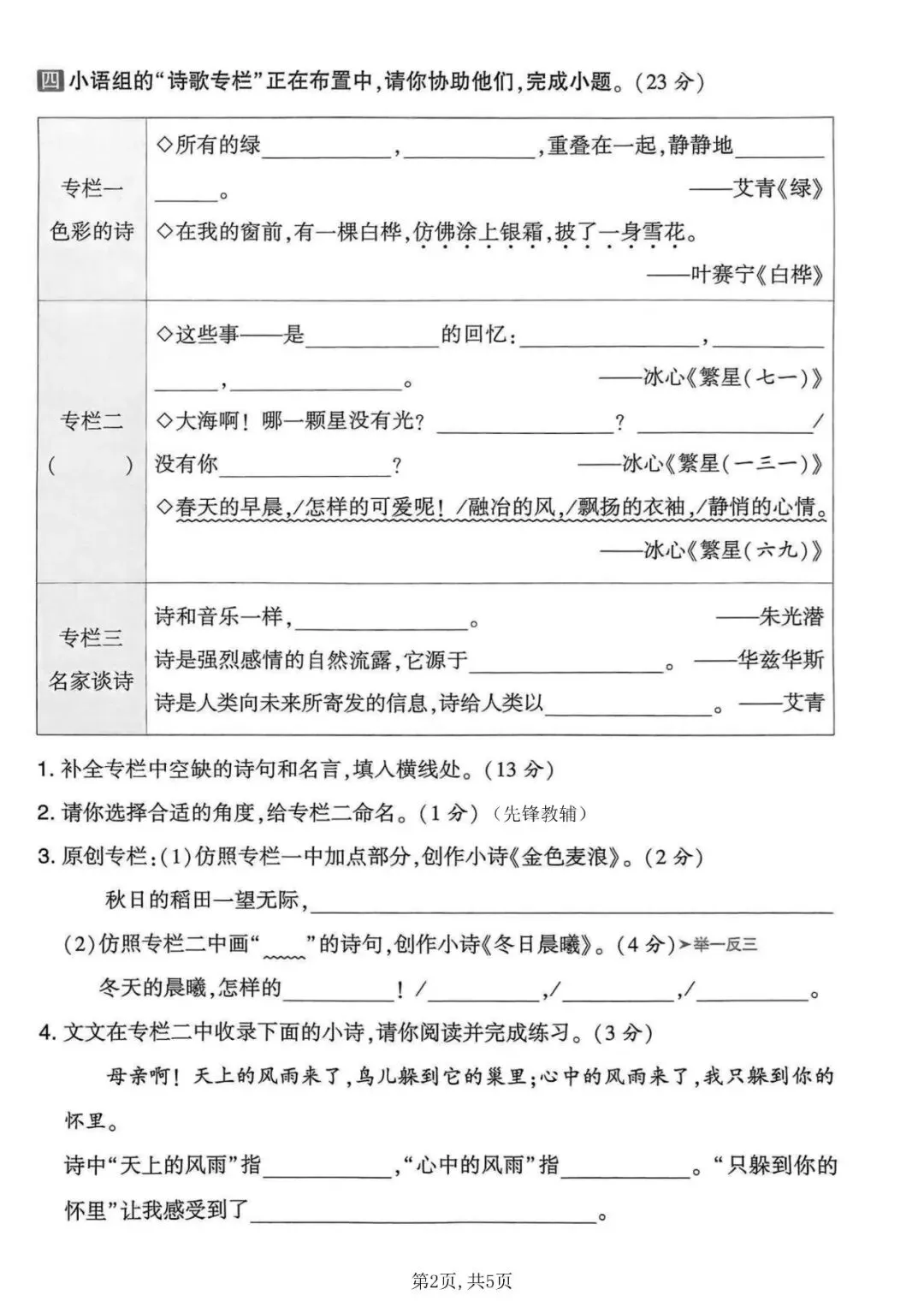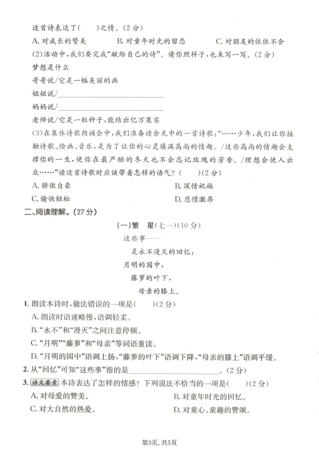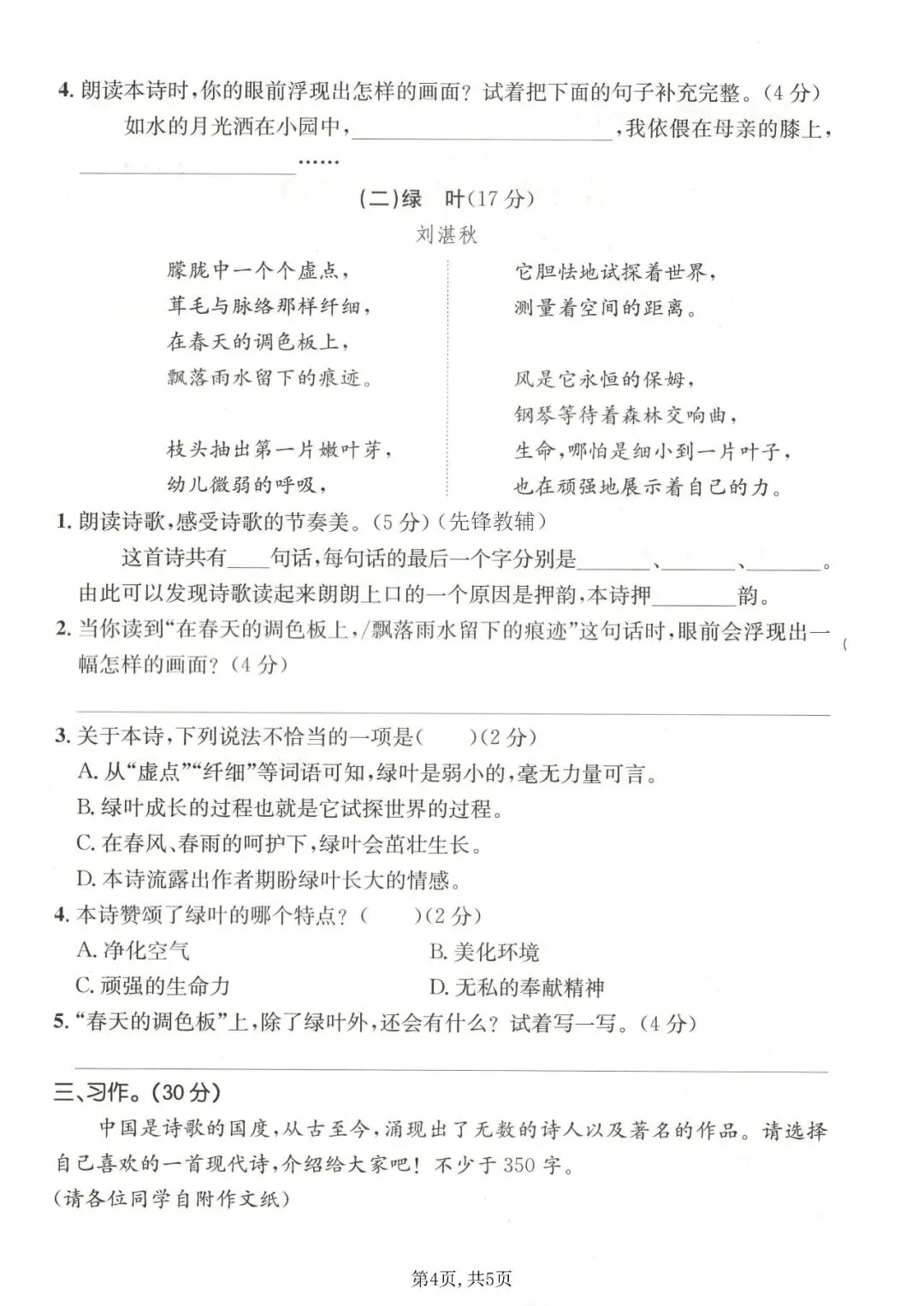 四年级语文下册《第三单元检测卷》2套丨可下载