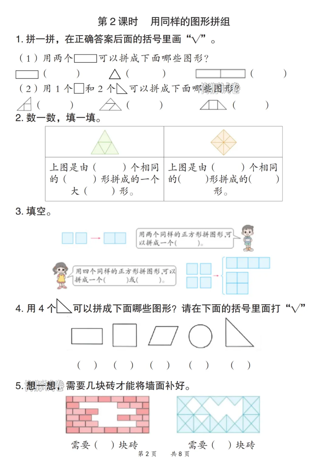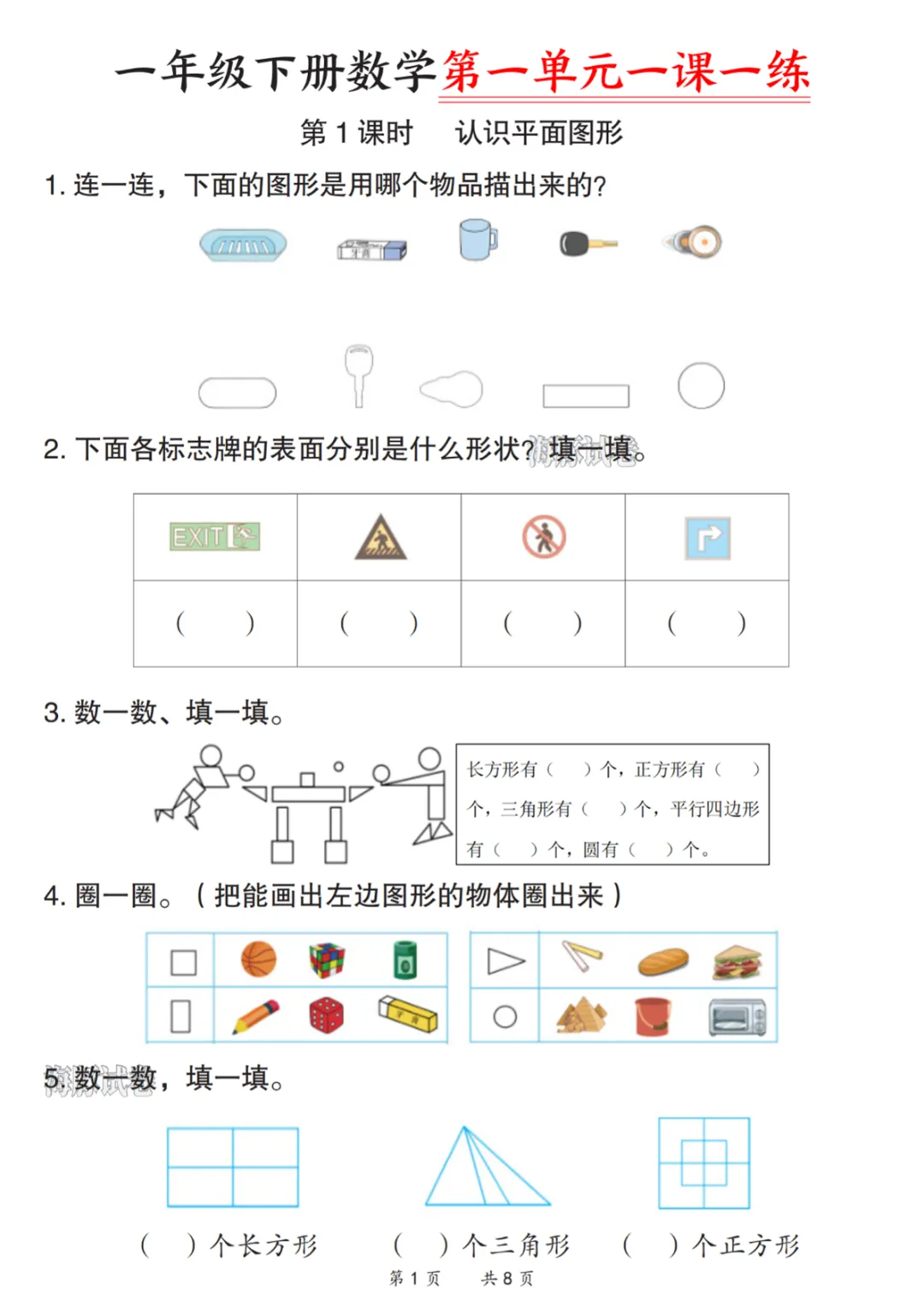 【免费下载】一年级(下)数学第一单元一课一练,PDF电子版,可打印