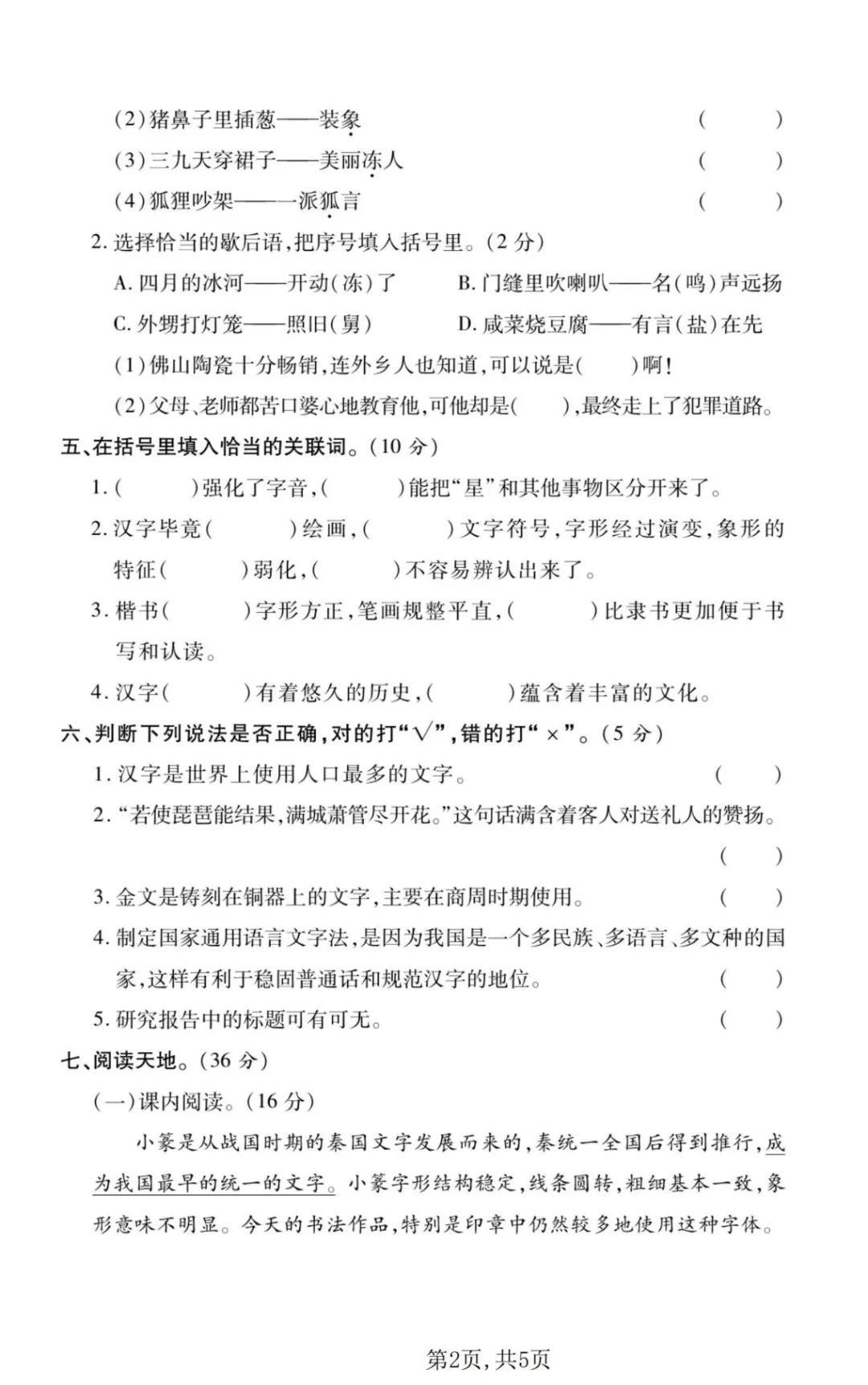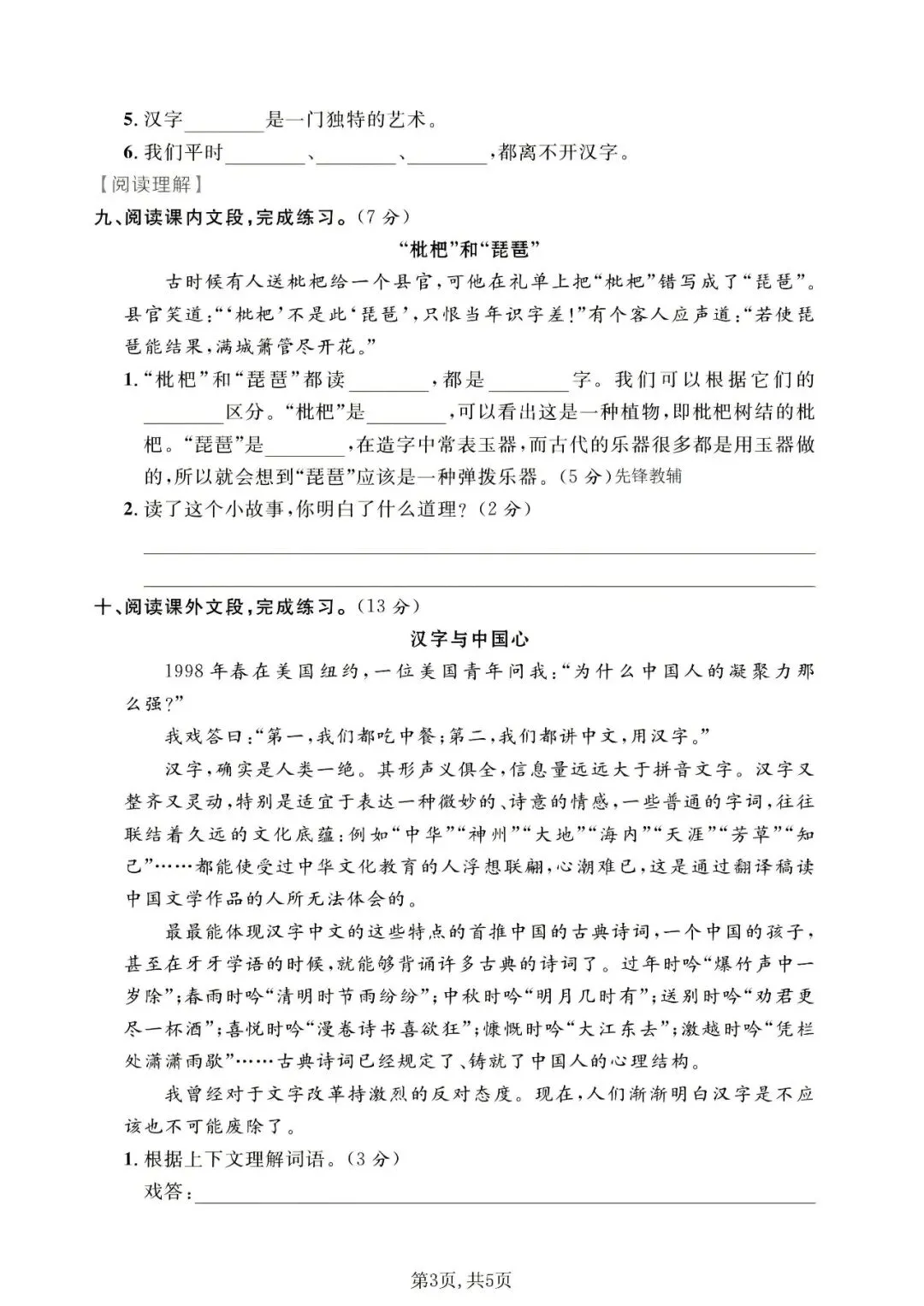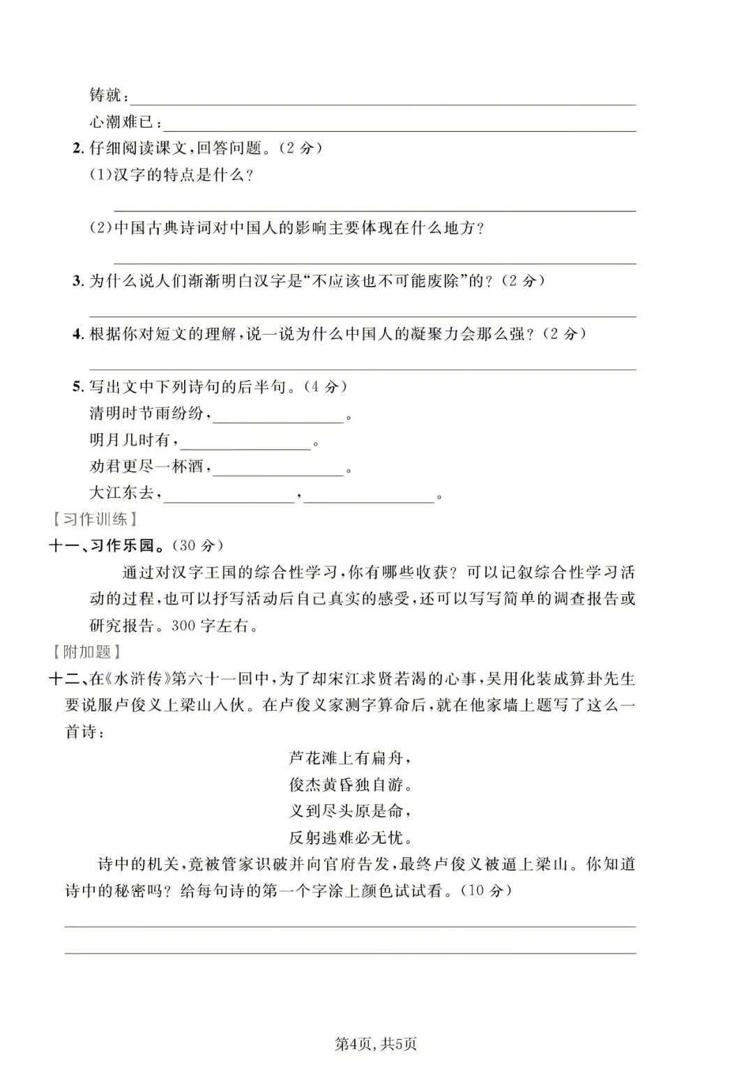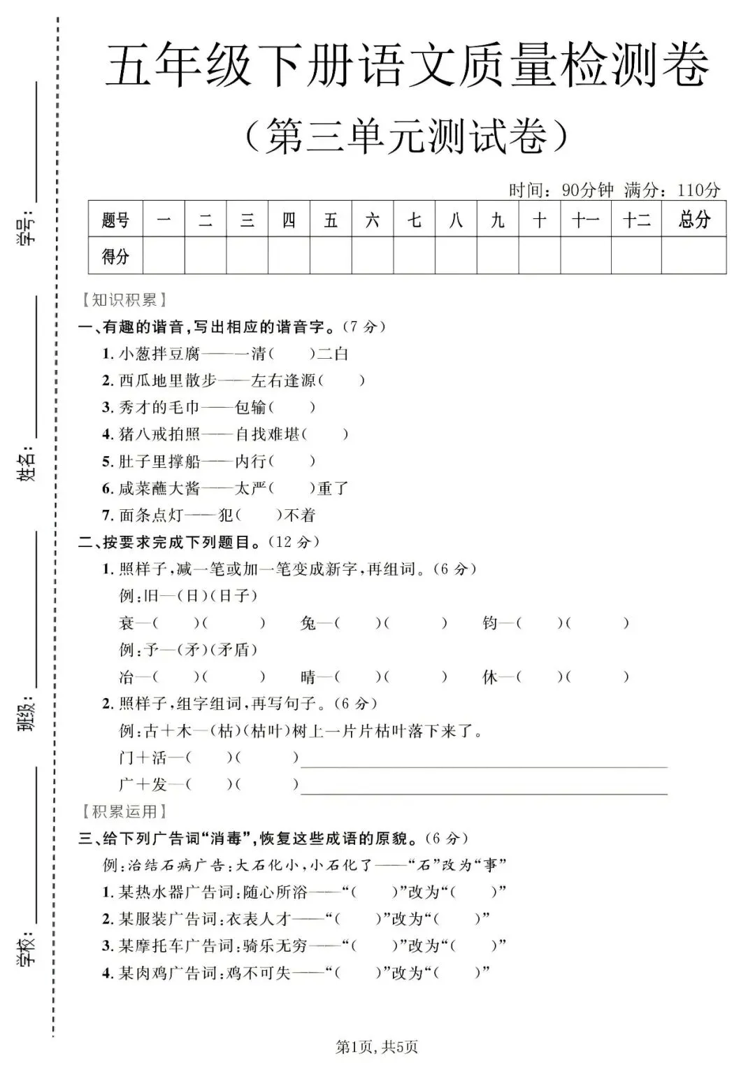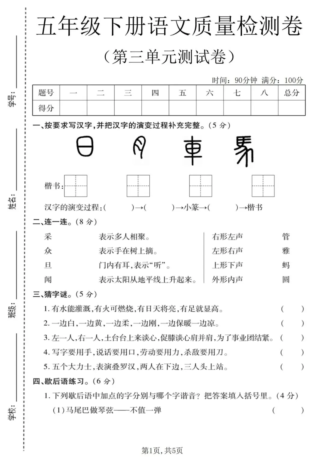 五年级语文下册《第三单元检测卷》2套丨可下载