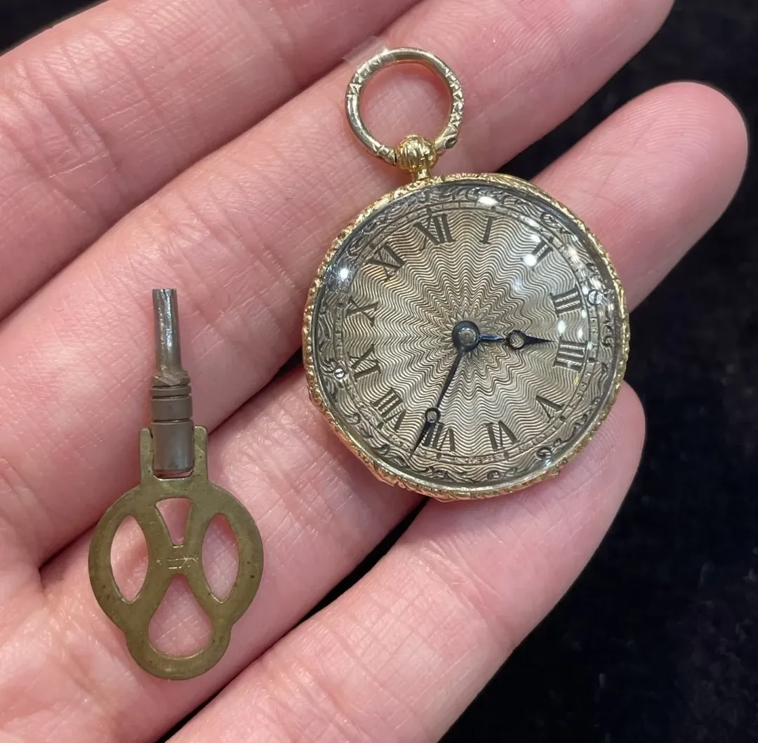 图上这一对,一个圆乎乎的金色小表加一把古怪样子的钥匙,老一辈人叫它怀表和上发条的钥匙,那怀表乍一看挺有派头,外壳略带点老金色,摸上去分量十足,细看一圈用花纹刻得仔细,表盘上罗马数字一个不落,秒针也老老实实没离开过岗位,这小巧劲头,和现在的大号手表完全不是一路货色。