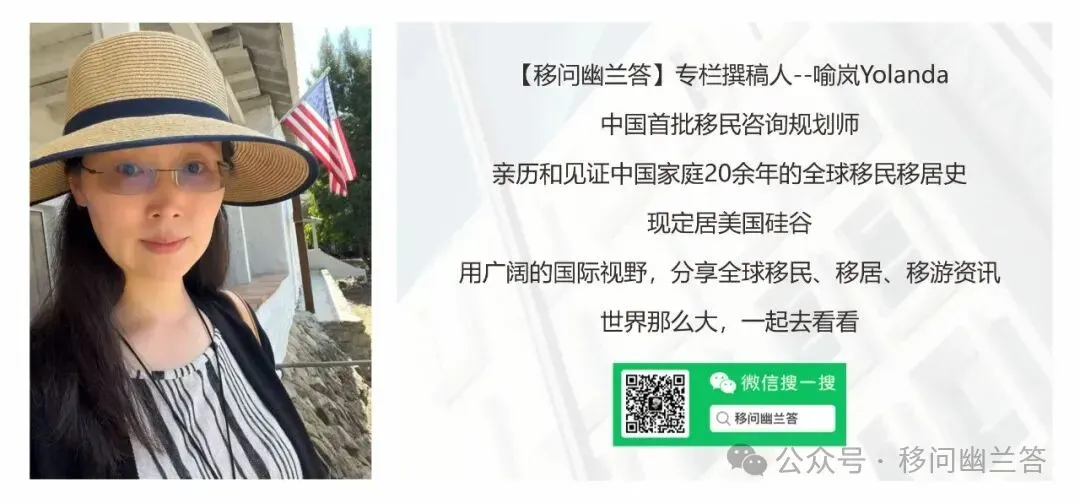 希望以上的资讯对您有帮助,如想了解更多全球移民、移居、工作、留学的相关资讯,请关注【移问幽兰答】微信公众号,如需背景评估或相关咨询,请直接与Yolanda联系(微信ID:18616640202)
