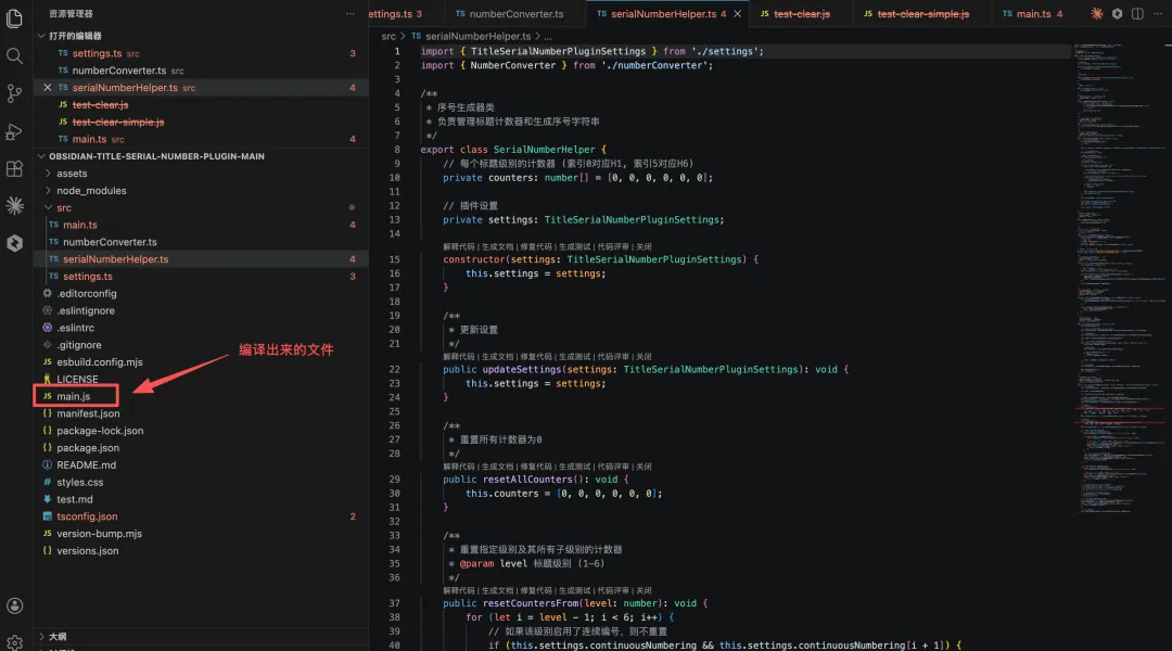 我先在GitHub上找到obsidian插件Title Serial Number Plugin的仓库,把源码下载下来。然后在VS code打开了这个文件夹,让AI解读工程文件,再把需求告诉它。当然上述需求不是一次性全部说出来的。