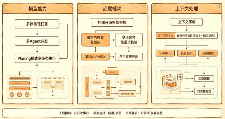 前期这个问题主要出现几个地方,一个是模型能力,另一个是底层框架,还有一个是上下文的处理。