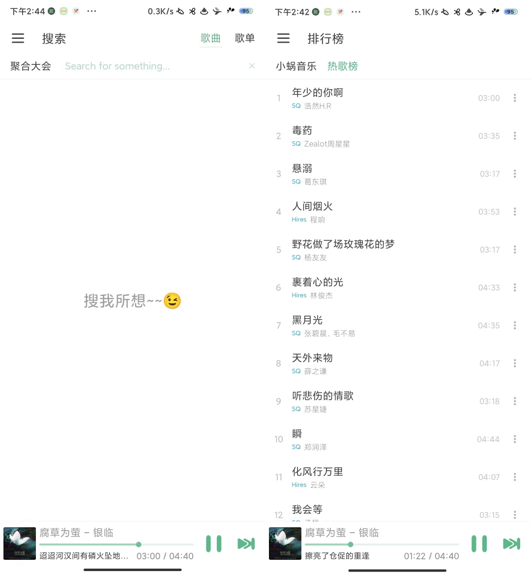 这是现在少有的高颜值免费听歌APP,可畅听全网音乐,无论流行金曲、白噪音,还是日韩欧美古典乐,这里一应俱全。最新榜单、每日推荐歌单等全部开放,无需注册登录,就能轻松搜索全网曲目,并支持导入其他APP的歌单。一个应用,实现听歌自由!