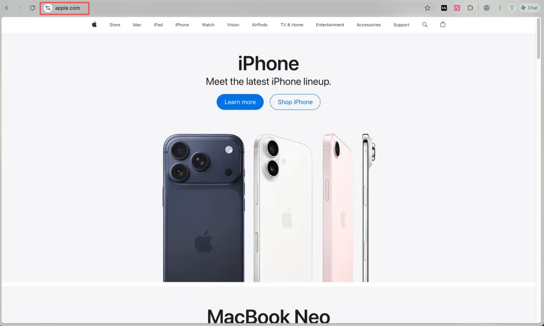 我们先复制一个网站,什么都可以,这里用苹果官方网站举例。