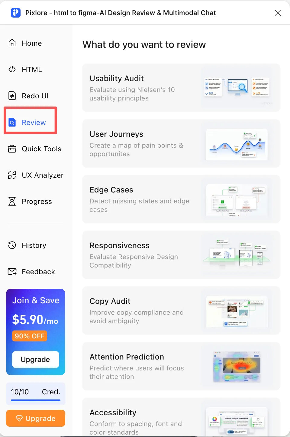 点开【Review】,可以看到里面提供了7个设计走查。