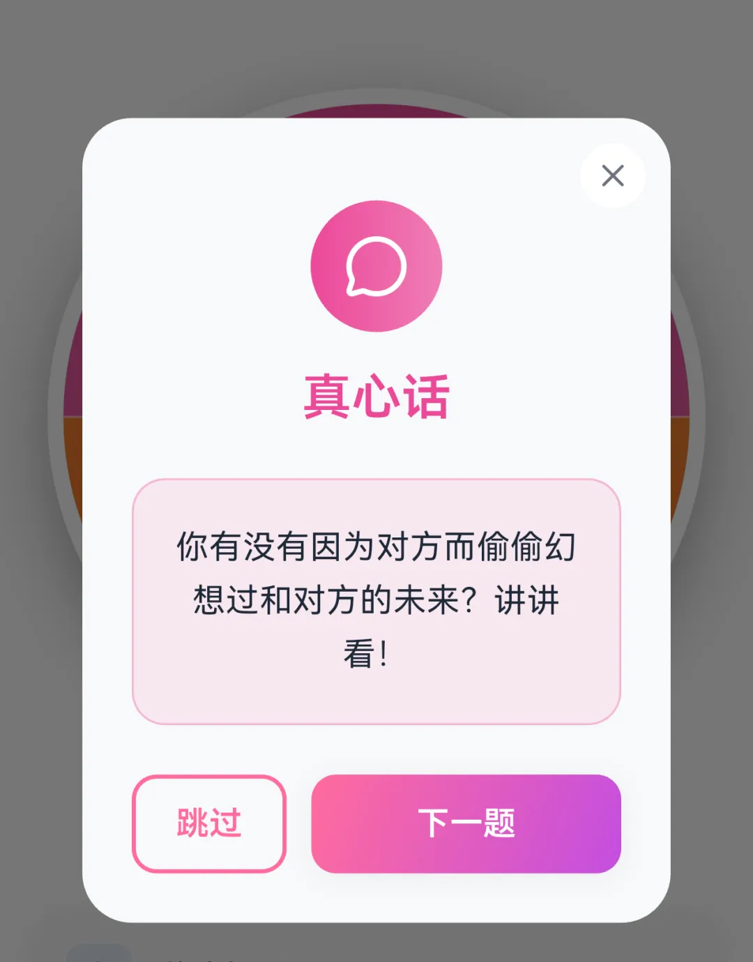 经典游戏升级版。题库涵盖各种类型——甜蜜向、深度向、趣味向,可以根据你们的关系阶段选择合适的难度。