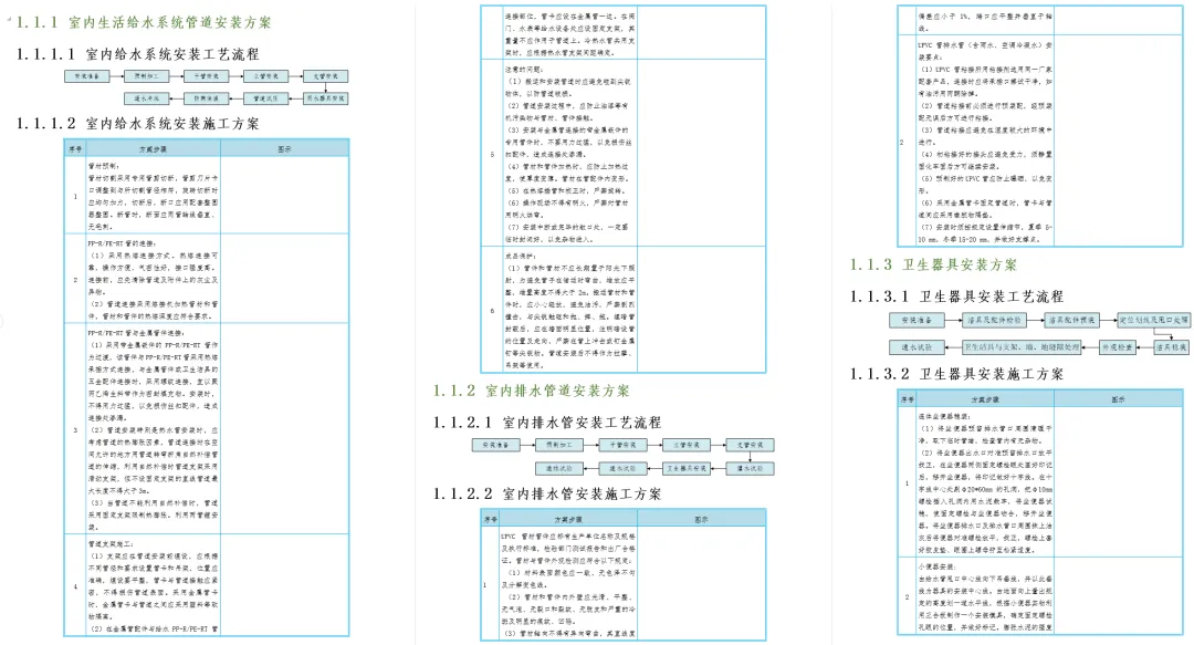 关键点:PP-R/PE-RT管采用热熔连接,严禁旋转、金属管卡与管道间加软隔离、热水管要考虑热膨胀,自然补偿或加固定支架