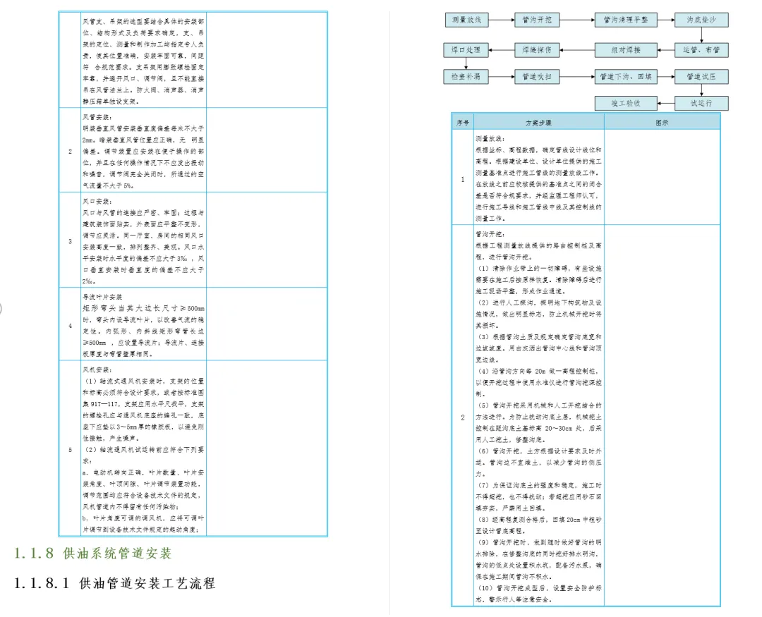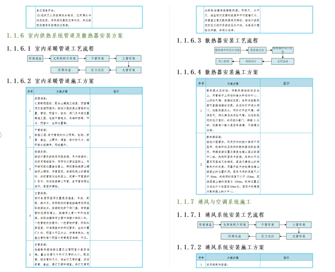 工艺流程:管材预制 → 管道连接 → 支架施工 → 试压冲洗