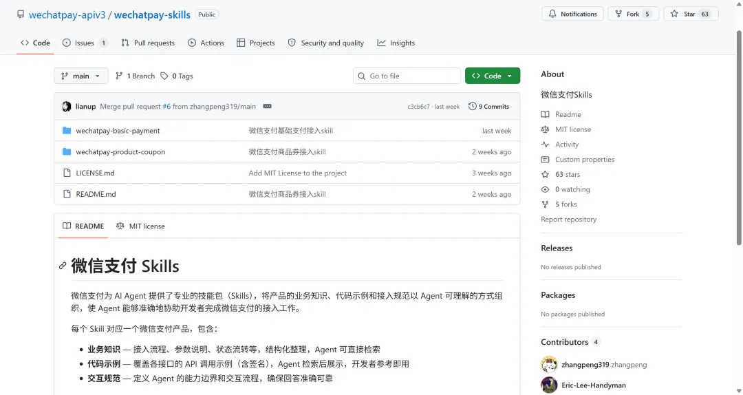 对中小商家和独立开发者来说,影响最直接。以前接入微信支付,要么啃文档,要么雇人写代码。现在你打开Cursor或CodeBuddy,加载微信支付Skill,说清楚你要什么,代码出来,安全检查也顺带跑了。技术门槛砍掉了一大截。