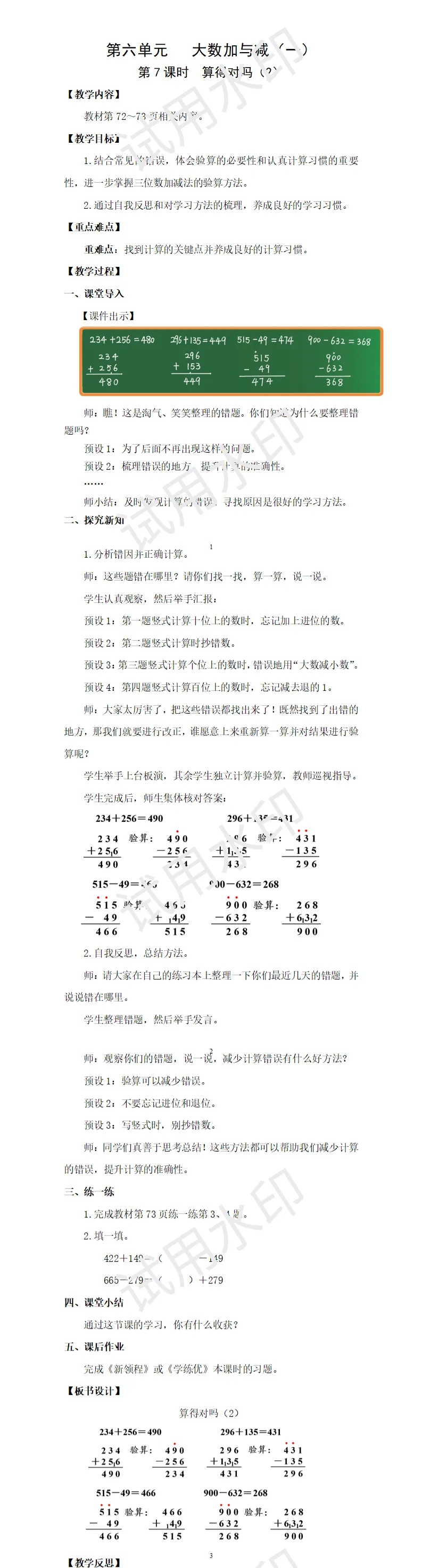 限时免费下载:北师大版小学数学二年级下册《算得对吗》