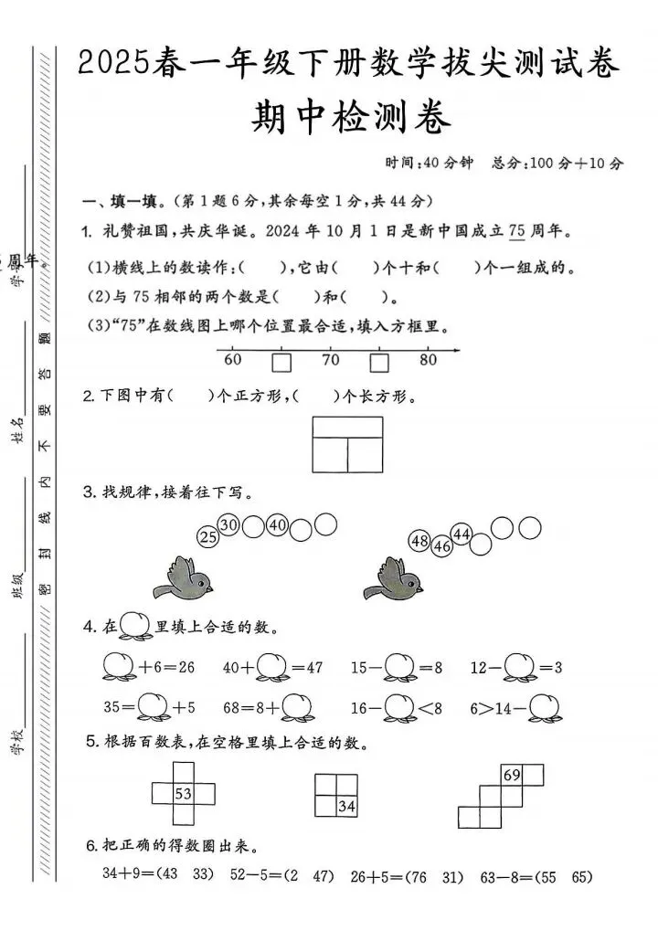 今日份分享一年级下册数学人教版期中测试卷5套(完整电子版可打印)!这份资料已经整理成可打印版本,方便孩子随时翻看学习,建议家长先收藏,再转发给身边有需要的家庭,一起帮助孩子高效学习~