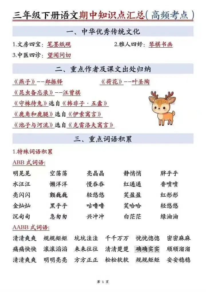 今日分享三年级下册语文期中知识点汇总,电子版可打印!这份知识点汇总,全面覆盖期中前所有单元核心内容,精准梳理生字词、多音字、形近字、近义词反义词、重点句子、课文理解、习作技巧等高频考点,条理清晰、重点突出,摒弃冗余内容,直击易错点、重难点,在家就能帮孩子系统复盘、巩固所学,快速掌握期中核心知识点,轻松应对期中检测,助力孩子夯实语文基础、实现稳步提升!