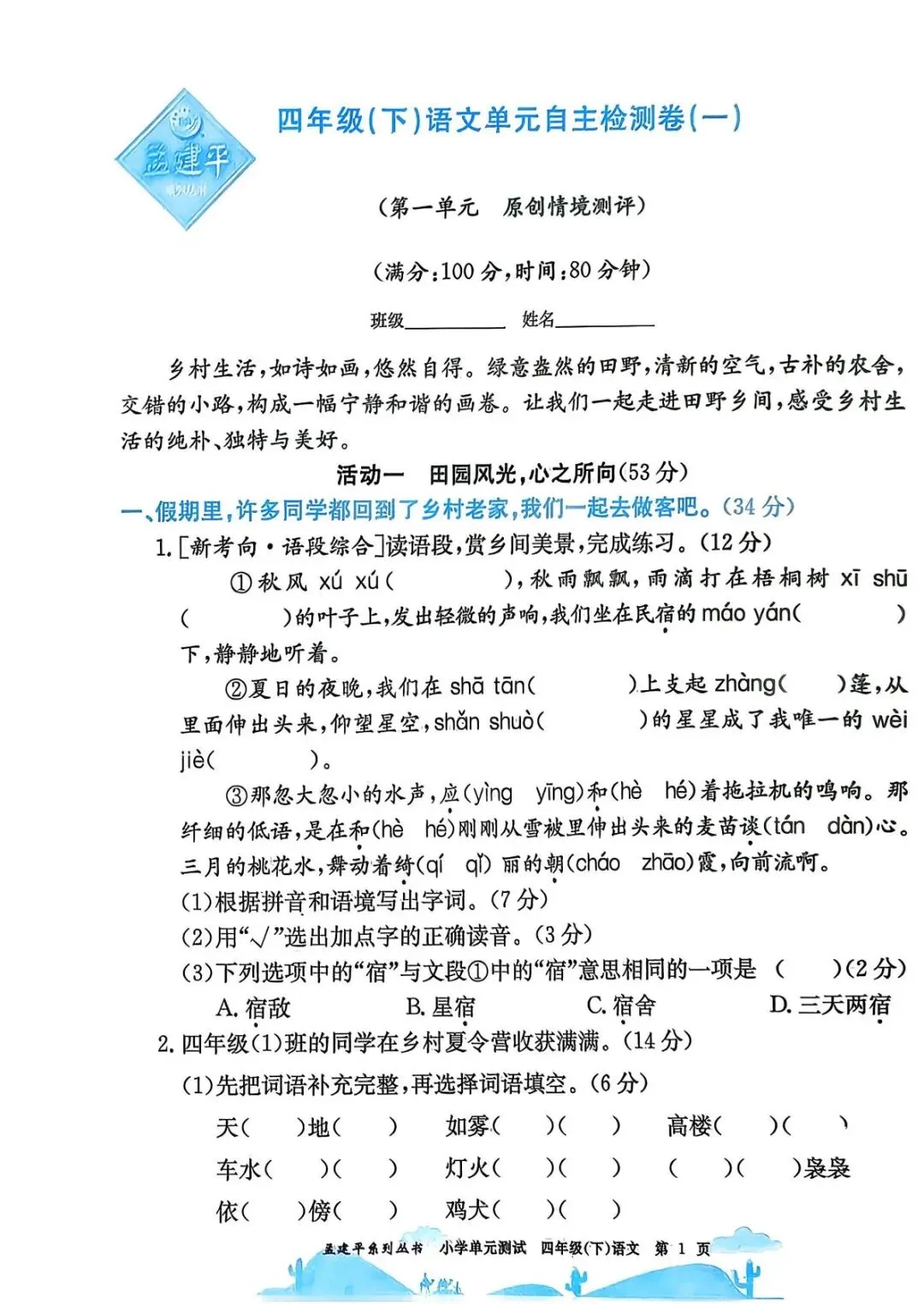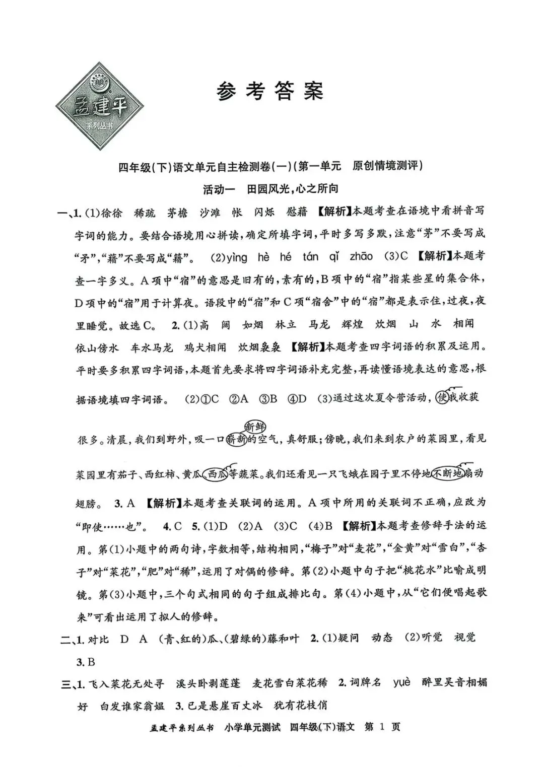 2026春孟建平《小学单元测试》电子版,小学语文/数学/英语,免费下载!