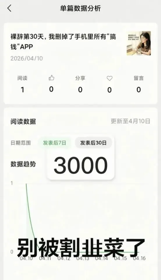 昨天发完那篇《裸辞第30天,我删掉了手机里所有“搞钱”APP》后,后台有朋友问我: