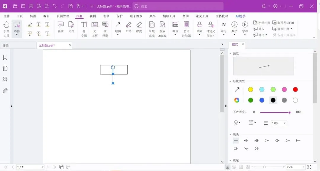 绘制完成,可以根据需要在右侧格式窗修改线条及颜色。改好后下次再画同样的形状,将保留最后一次修改后的效果。
