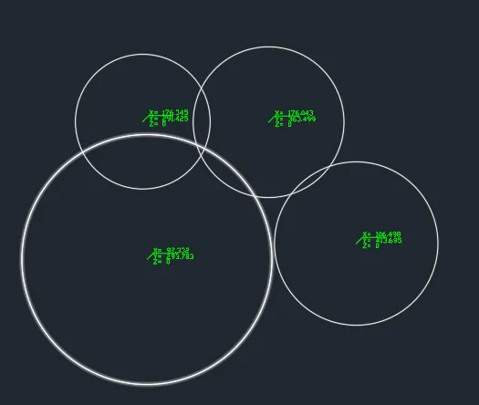 5.自动完成:程序会自动过滤掉非圆对象,并为每一个被选中的圆在其圆心处生成坐标标注。完成后会在命令行提示完成数量。