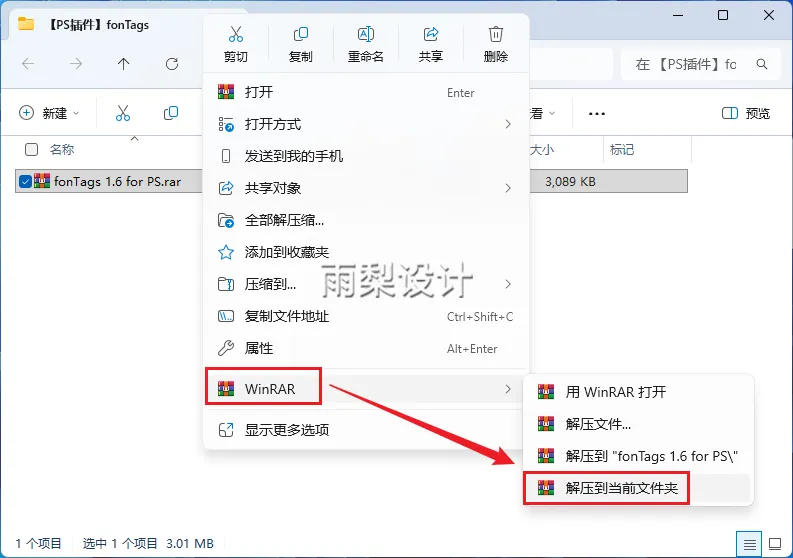 1.右键下载的插件压缩包,并【解压到当前文件夹】
