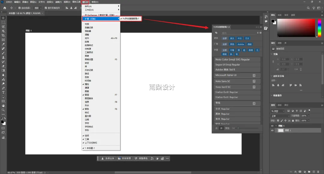 3.打开PS软件:点击【窗口】>【扩展】>【Ps字体增强管理v1】