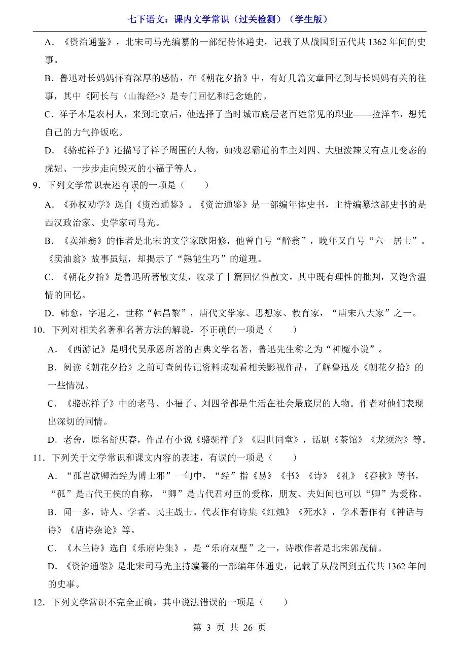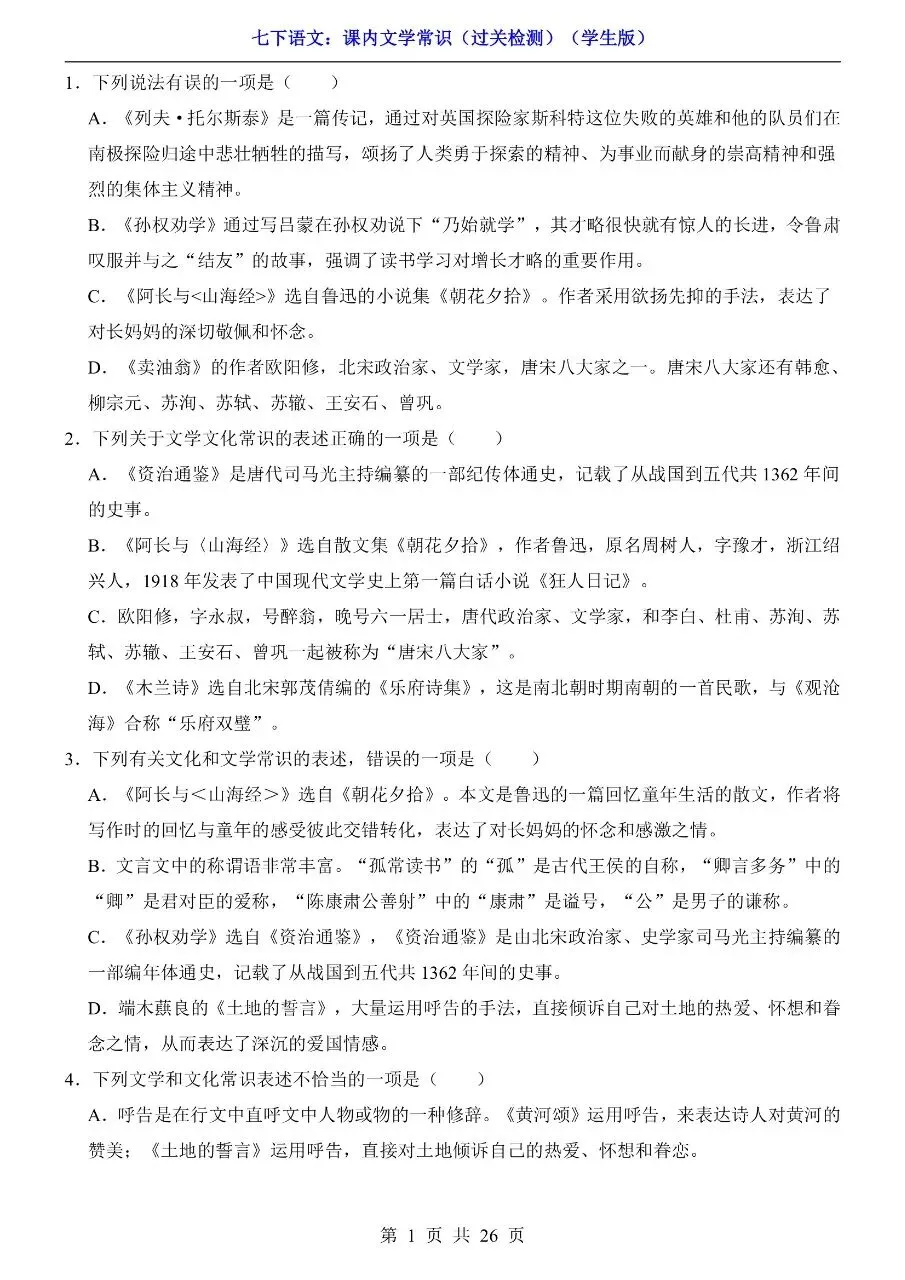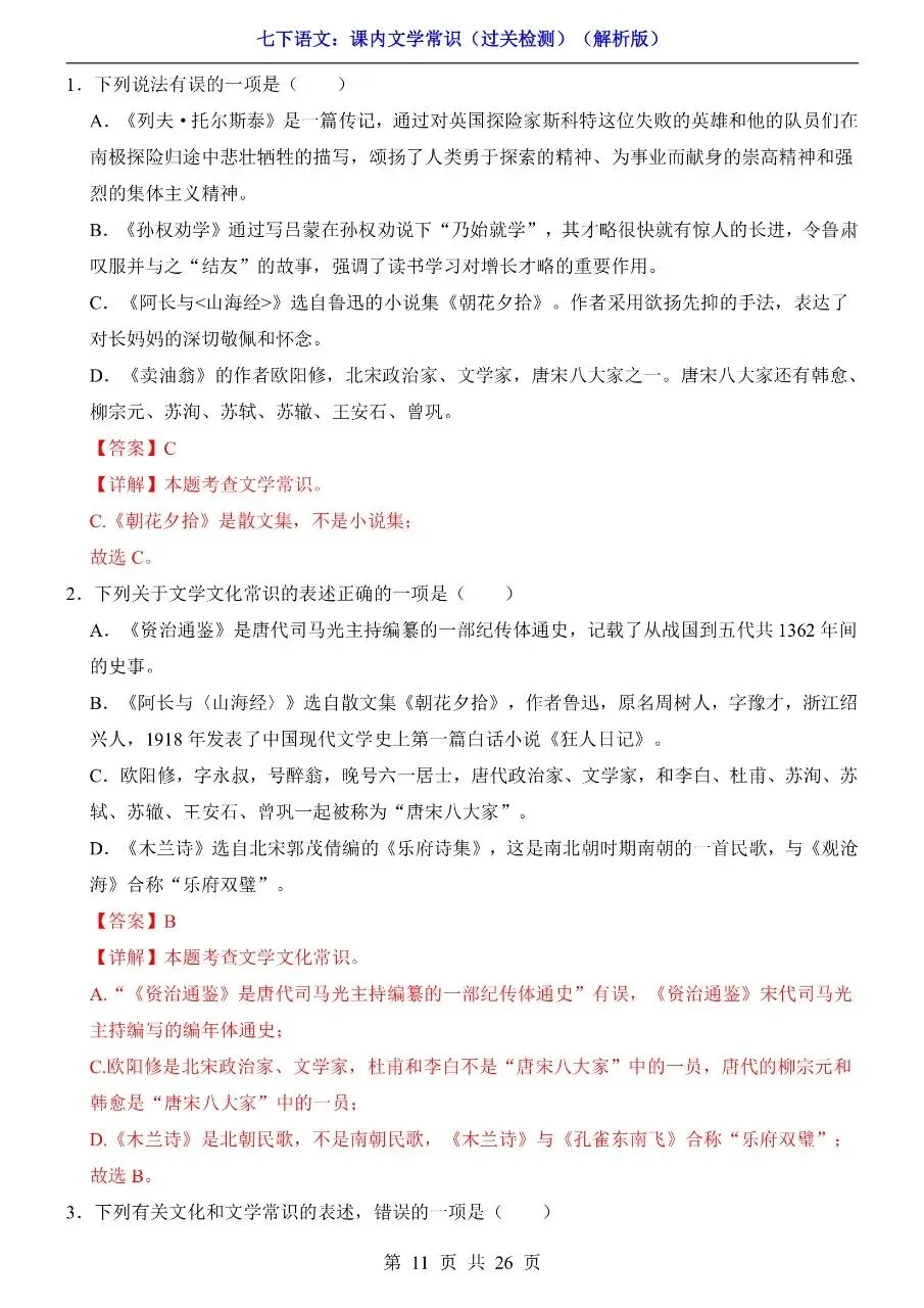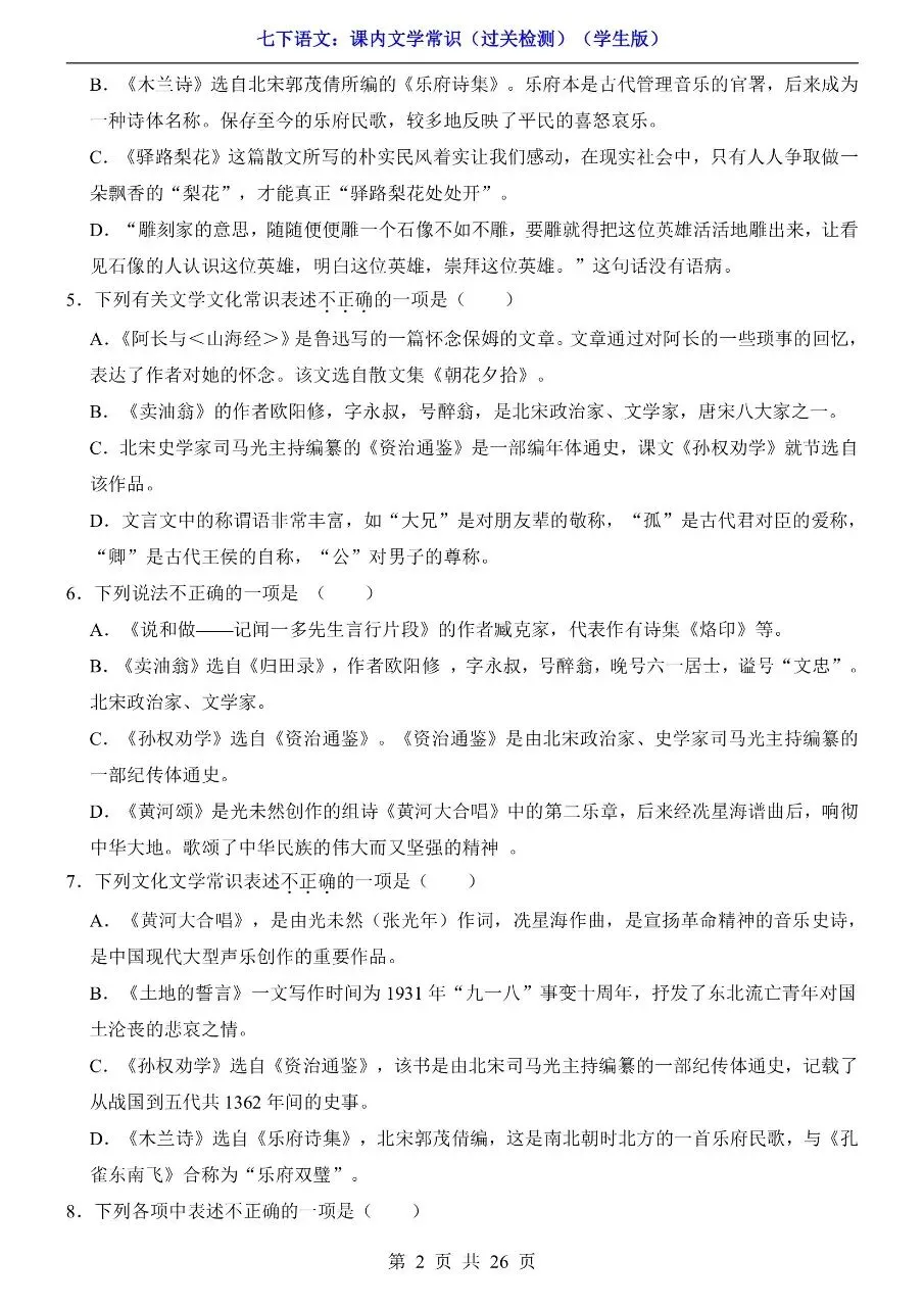 七年级下册语文|课内文学常识过关检测(可下载打印) 初中资料每日更新,具体看完整PDF版本 (温馨提示:文末👇有电子版下载🔗) 新版七年级(初一)下册语文 课内文学常识过关检测 △因篇幅有限,只展示部分资料截图△ ↓↓↓ 领取完整电子版: ①:点一点右下角的“👍”和“❤️”,感谢🙏 ②:在公众号对话框回复:1061 资料合集:👇👇 七年级下册数学 七年级下册英语