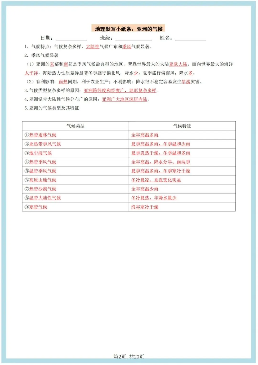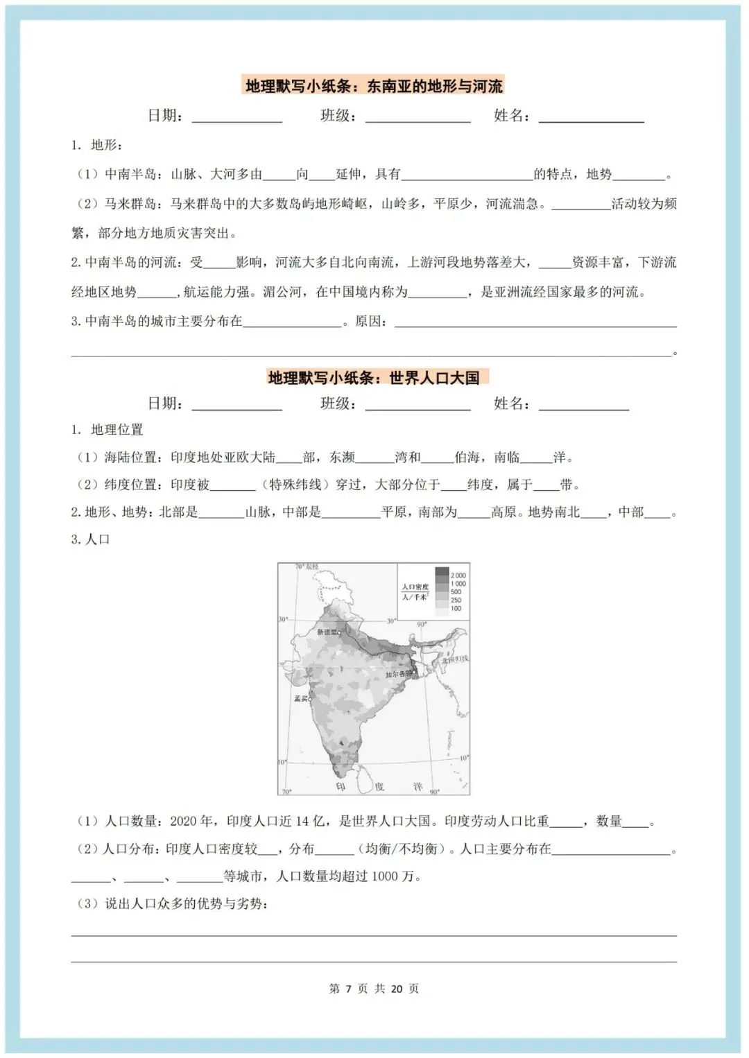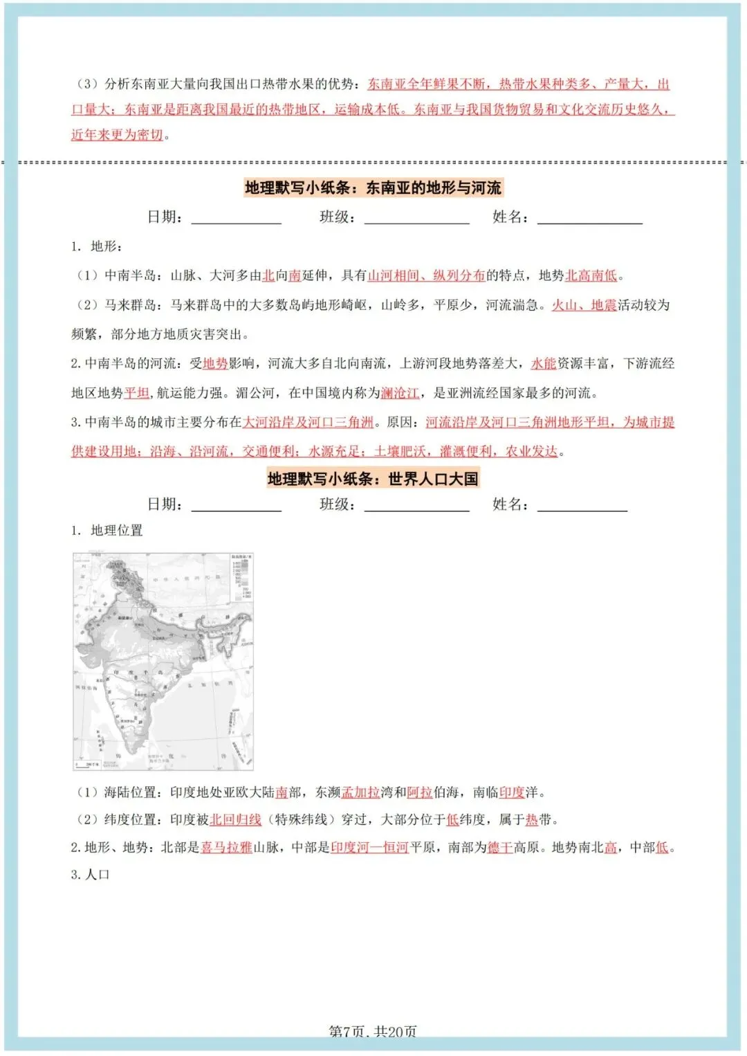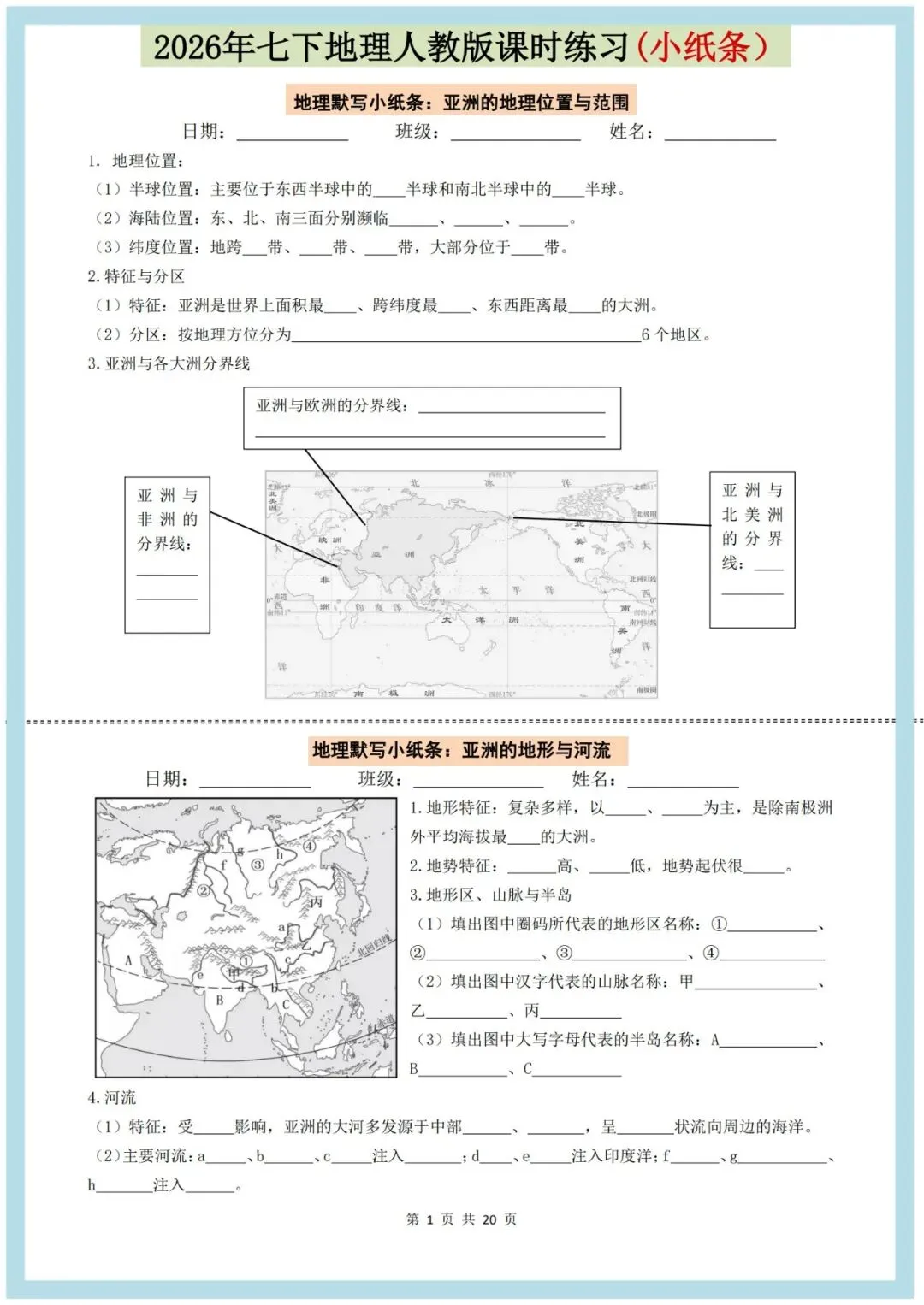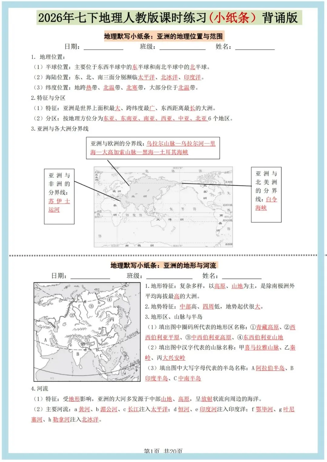 2026七下人教版地理课时小纸条(空白版+答案版),老师整理了完整,可打印,建议家长打印,学霸人手一份! 点击上方蓝字关注我们 2026七下人教版地理课时小纸条(空白版+答案版),老师整理了完整电子版,可打印,建议家长打印,学霸人手一份!