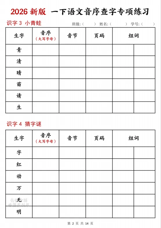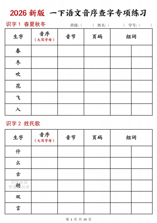(文末可下载)一年级下册语文音序查字典专项练习 家长需要进资料群或家长群,上图扫码备注年级即可,群内每日免费更新课内同步资料+课外扩展资料,第一时间拿到一手资料,进群每日获取最新学习资讯! 更多资料上图扫码免费获取: 电子版: 「26春一年级(下)语文生字音序查字专项练习.pdf」 链接:https://pan.quark.cn/s/512f97813a4c 关注公众号,每日更新课内同步资料+课外扩展资料