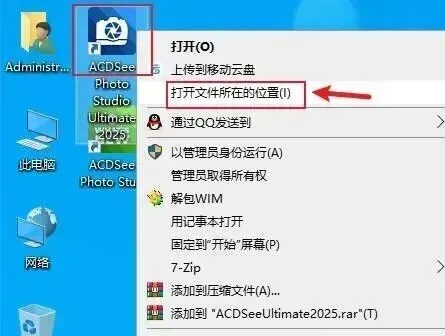 9.鼠标右击桌面【ACDSee……】图标选择【打开文件所在的位置】。