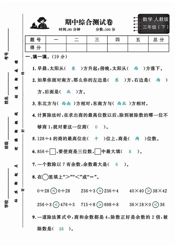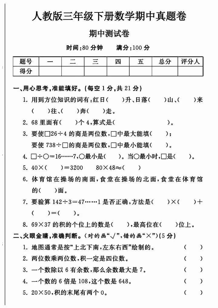 今日份分享三年级下册人教版数学期中测试卷5套(完整电子版可打印)!这份资料已经整理成可打印版本,方便孩子随时翻看学习,建议家长先收藏,再转发给身边有需要的家庭,一起帮助孩子高效学习~