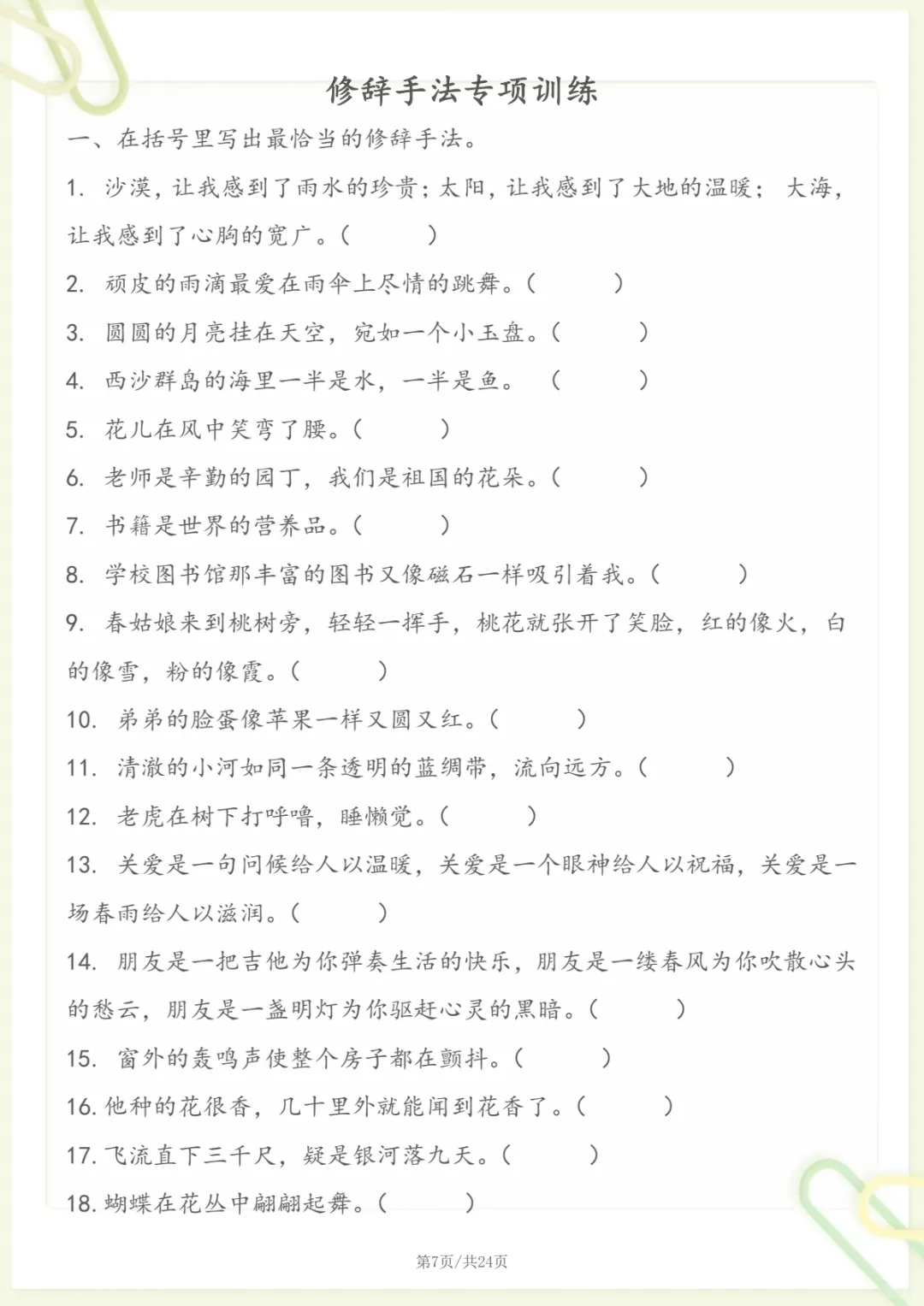【修辞手法详解及练习】三下语文,电子版可打印 None (温馨提示:文末有完整领取方式) 免费领取完整电子版 ①:点一点右下角的“赞”和“在看”,感谢!②:在公众号对话框中回复: 8582 ③: 点击小程序领取→电子版资料