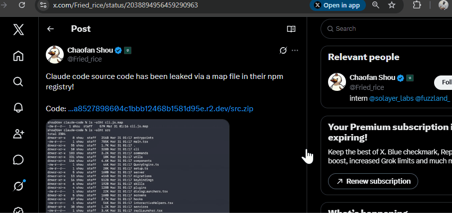 如果你还没看到 Claude Code 的泄露源码,它最初出现在一条由 @Fried_rice 发起的 X 线程里,随后很快演化为一堆仓库、分叉和更新。