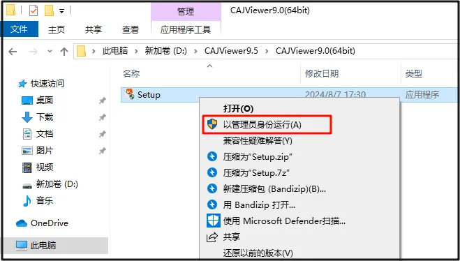 第三步:打开解压后的文件夹,找到【setup】安装程序,右击【以管理员身份运行】。