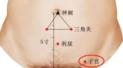 子宫穴位于下腹部肚脐中心处大约4个手指的部位,对其按摩的方法也很简单易行。