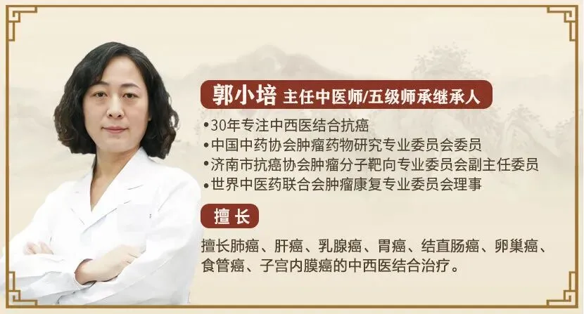 大家好,我是肿瘤科郭小培主任,擅长中西医结合治疗肺癌、乳腺癌、肝癌、胃癌、结直肠癌等恶性实体肿瘤。我会每天分享肿瘤方面的知识,给大家带来健康,远离疾病!