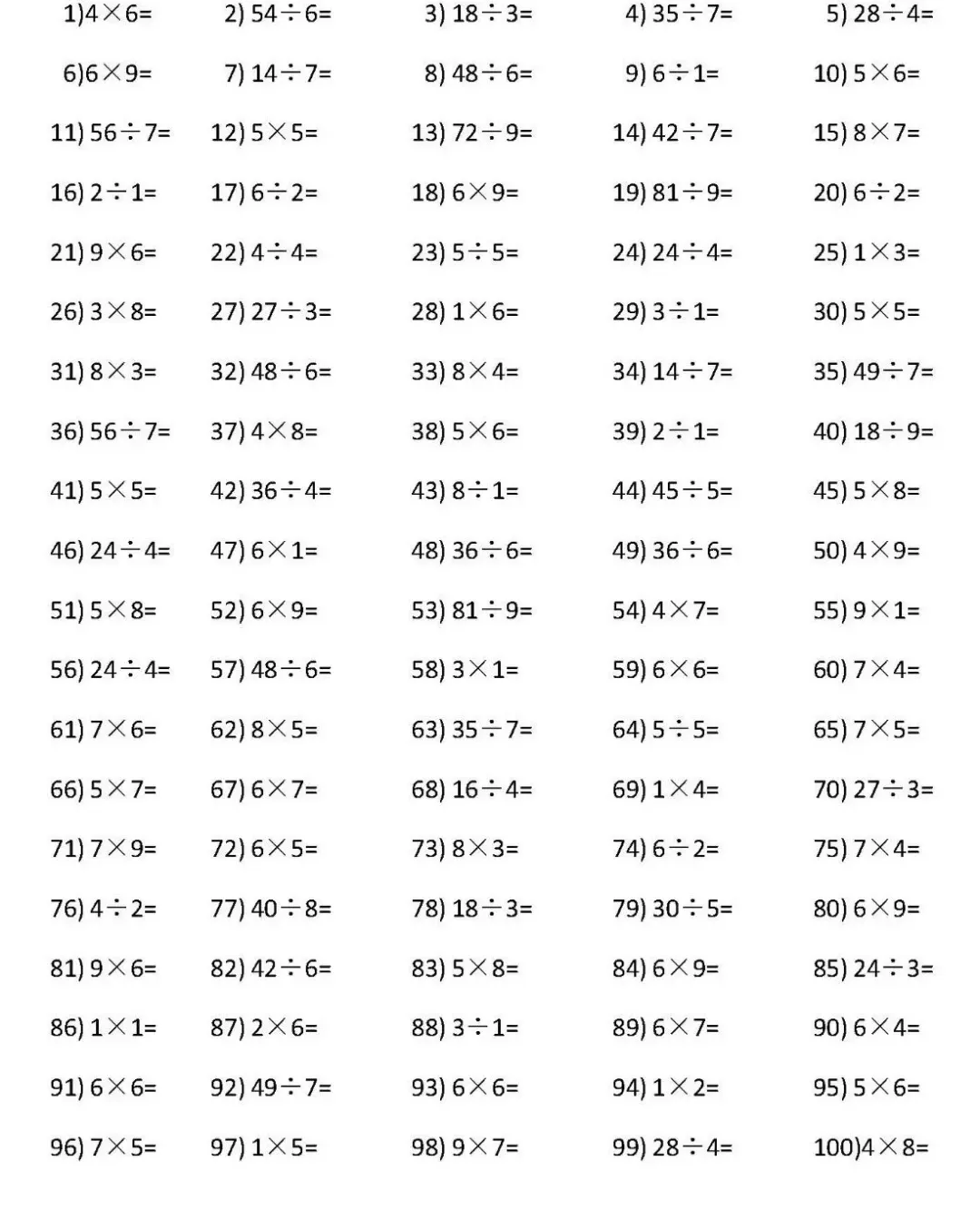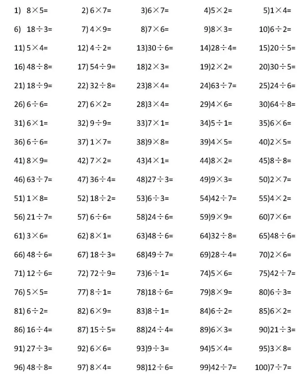 小学数学:加减乘除法则儿歌及附练习(可打印)