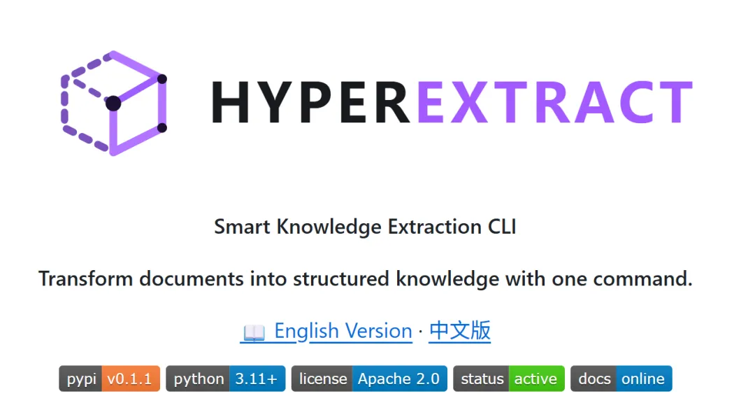 今天给大家介绍一个实用的开源工具——Hyper-Extract,一条命令就能把文档转化为结构化的知识图谱,值得一试。