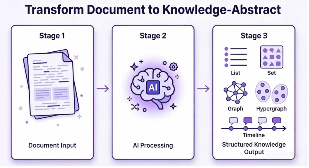 支持8种知识结构输出,除了常见的知识图谱,还能生成超图、时空图等高阶结构。这样的功能在同类工具中几乎找不到。