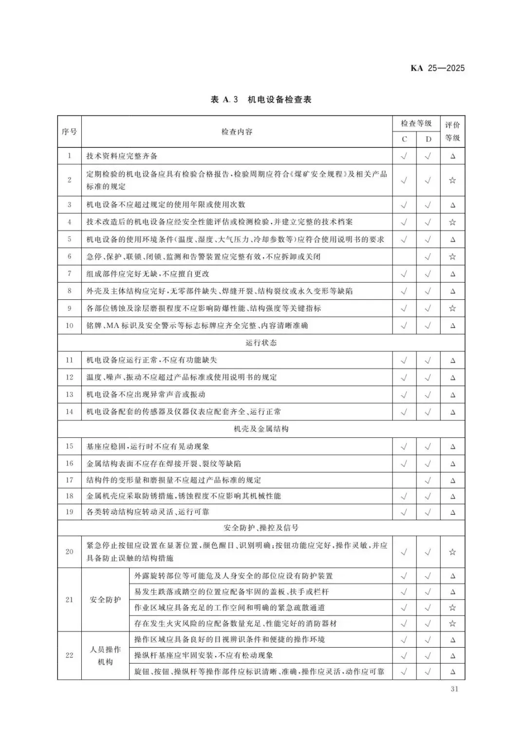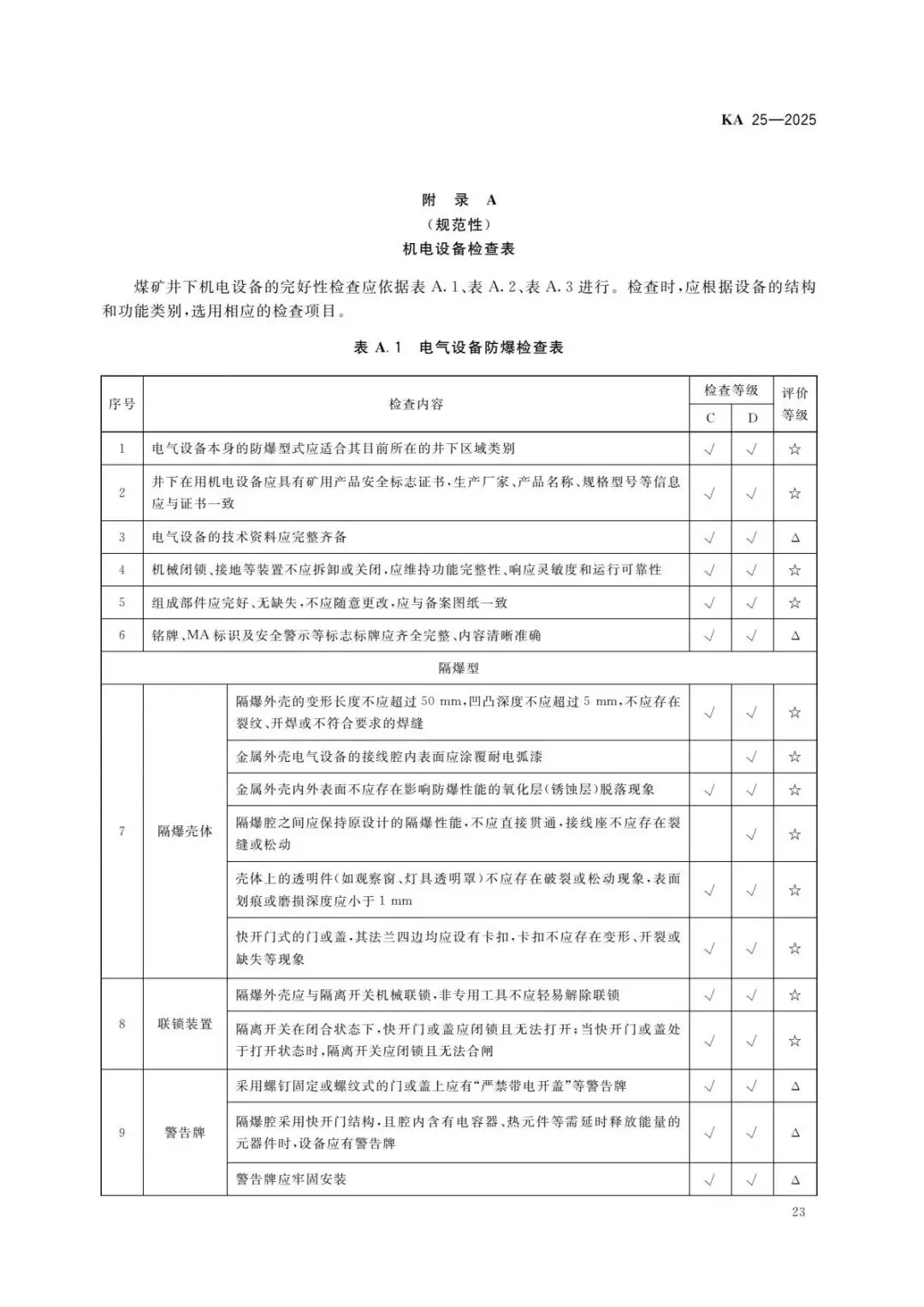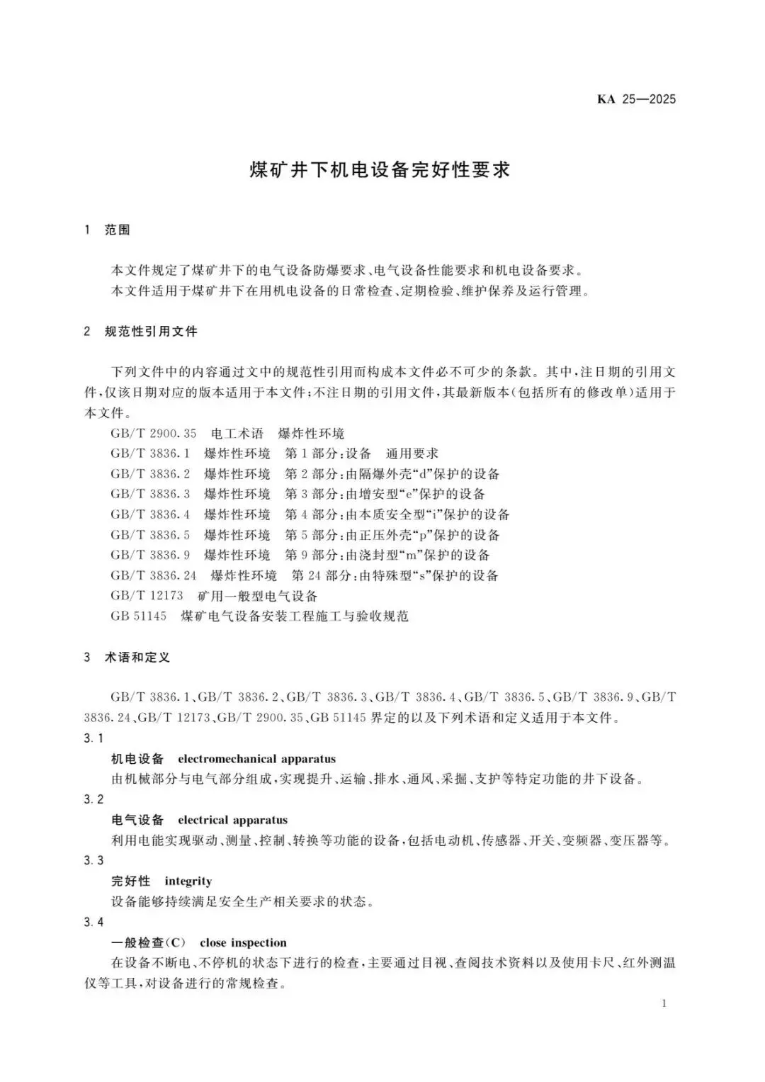 2026年2月1日国家矿山安全监察局发布了《井工煤矿机电设备完好性要求》(KA 25-2025),取代了原87年完好标准,以下是全文,最后附下载链接。