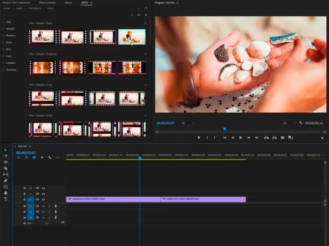 电影胶片过渡包是为各种技能水平的人创建的。即使您是初学者,也可以轻松使用它。包中的所有过渡预设都是MOGRT文件,是在 After Effects 中使用其原生效果创建的。这意味着您将在中获得所有具有高端效果的过渡效果,例如光学、镜头、发光、失真、相机模糊、平铺、色差等等!使用MYFX脚本调用预设,可视化预览,需要什么直接点击即可加载到时间线。