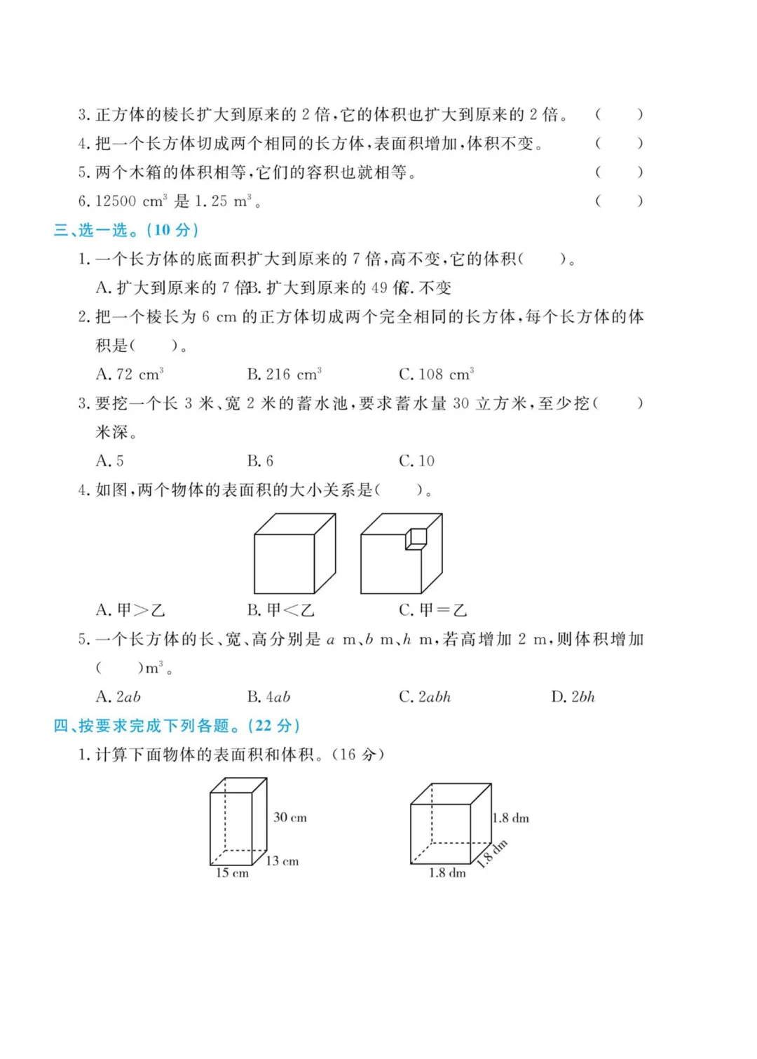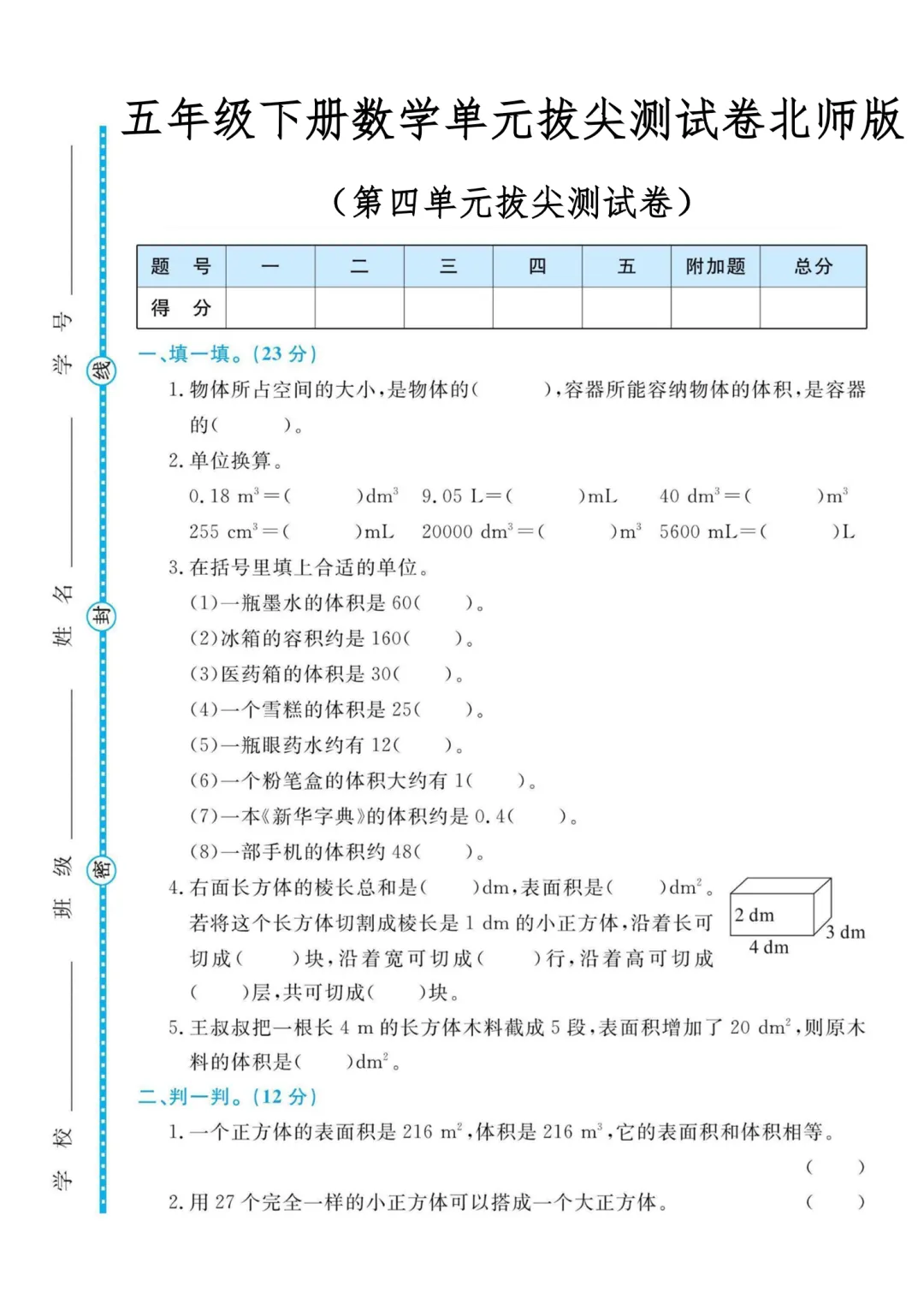 【免费下载】五年级(下)数学 第四单元拔尖测试卷《北师版》,PDF电子版,共5页,先保存,以免资源失效