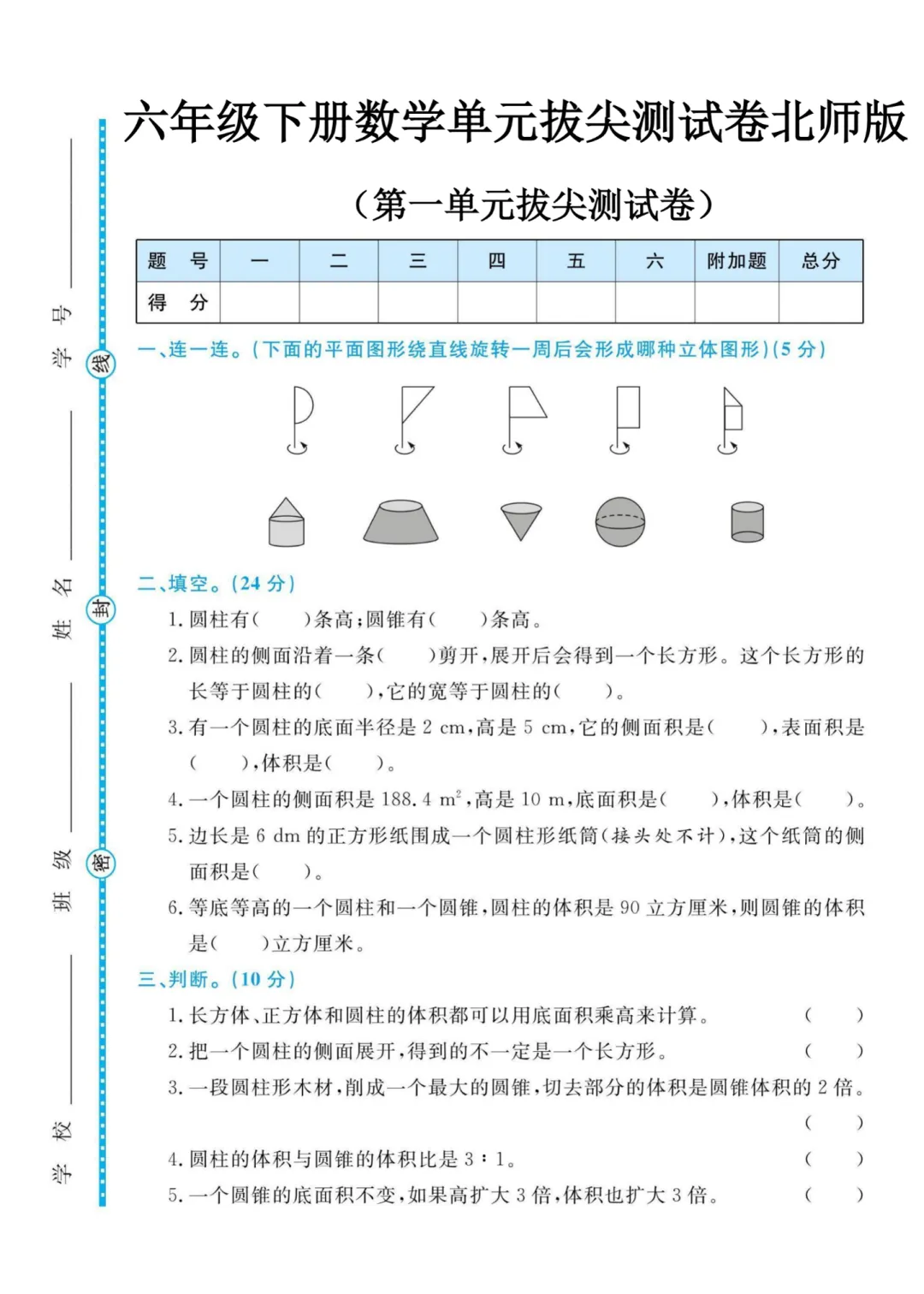 【免费下载】六年级(下)数学 第一单元拔尖测试卷《北师版》,PDF电子版,共5页,先保存,以免资源失效