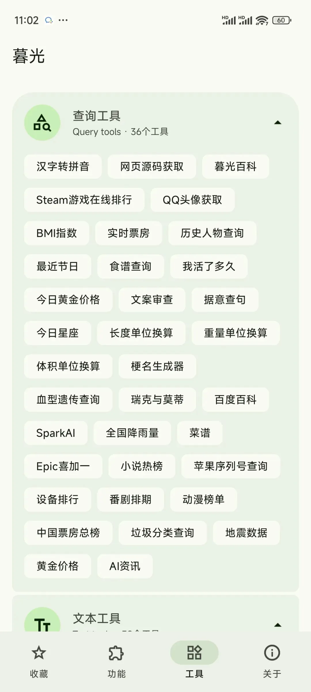 我最近在用的这款「暮光」,是个从2018年上线至今、开发者一直免费维护的全能工具箱,没有花里胡哨的收费套路,内置了上百个实用小功能,基本能覆盖日常用手机的大部分零散需求。