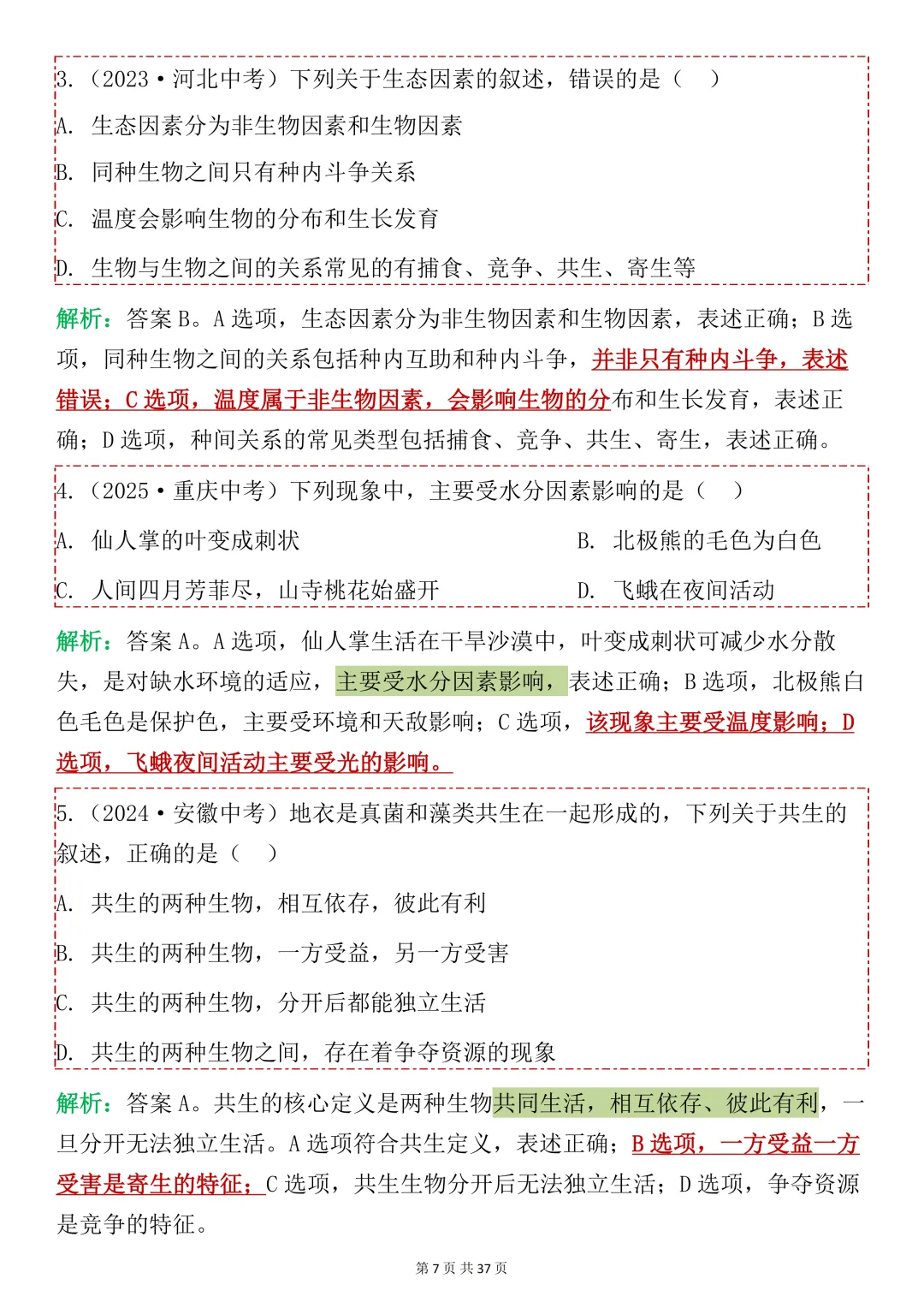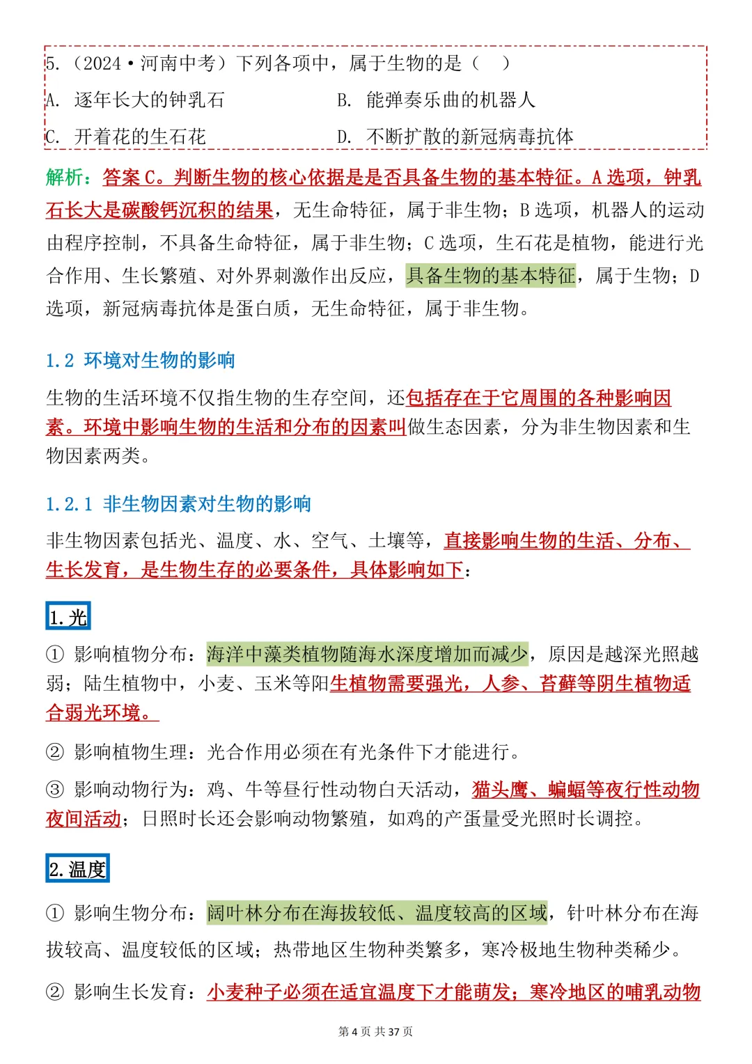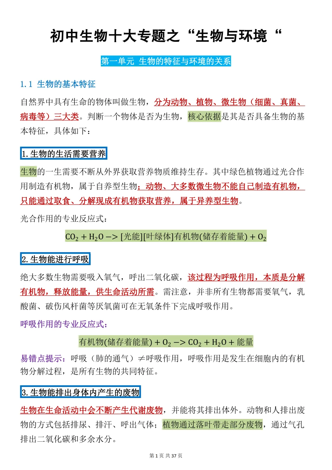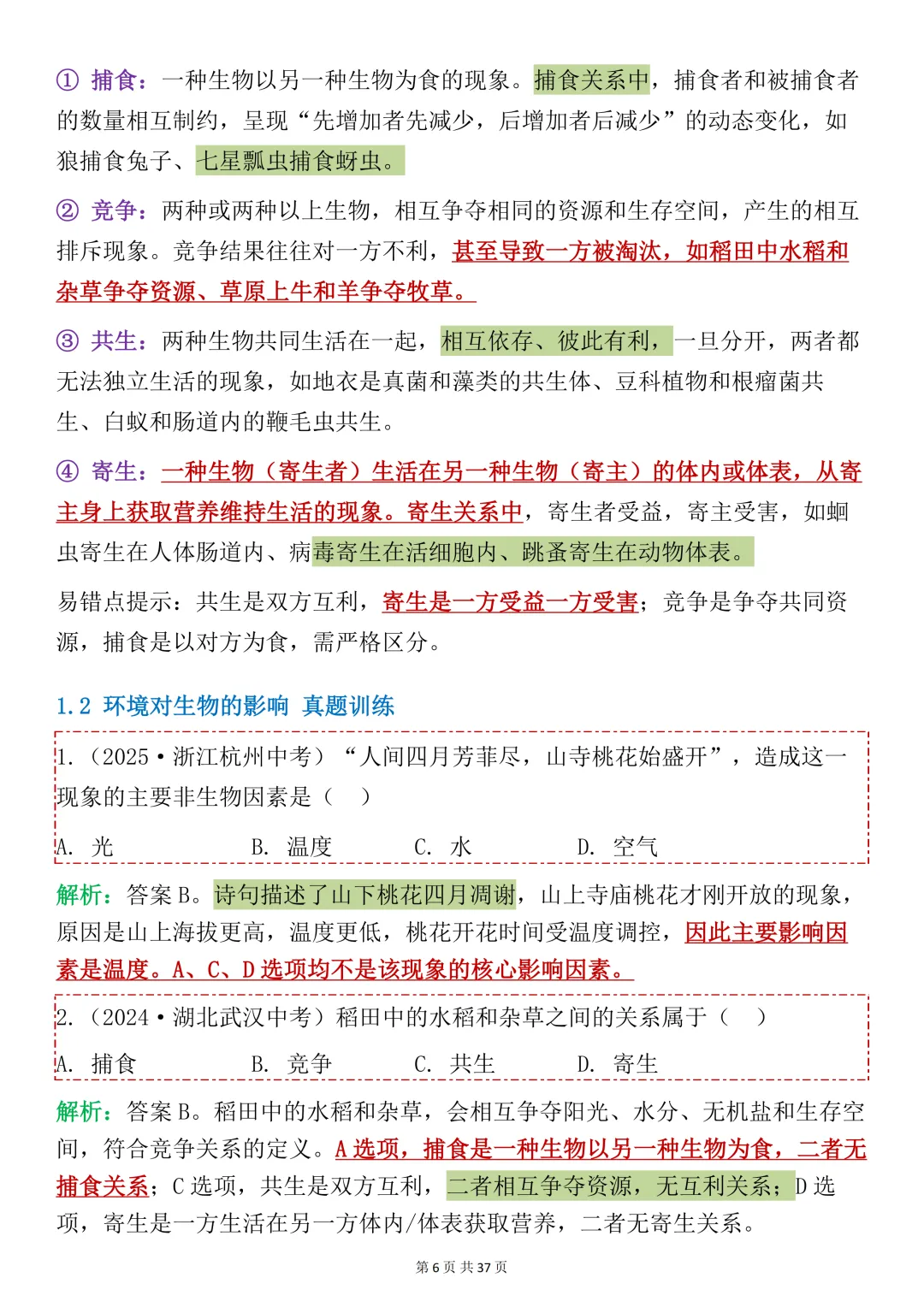 初中生物必背【十大专题之生物与环境】,可打印 快收藏 初中生物提分有妙招,核心关键在 “基础知识”。核心知识的积累是根基,尽管题型灵活多变,答题核心的本质始终不变。 今天给大家整理了中考必备的【最全初中生物与环境知识点+真题解析(全年级覆盖)】,不管题目如何变式,都能让表达更出彩,轻松拿下高分! 因篇幅有限,点击我的头像私信我回复 “资料获取” 就可以领取 word 电子版。以下是部分资料内容,完整高清版的发送私信即可。 受文章篇幅限制,仅能分享部分内容~ 领取方法: 1、先下方点👍“赞”➕♥“推荐,然后关注下方公众号 2、在对话框中回复“ 资料获取 ”即可获取完整电子版 更多资料及学习方法持续更新中……