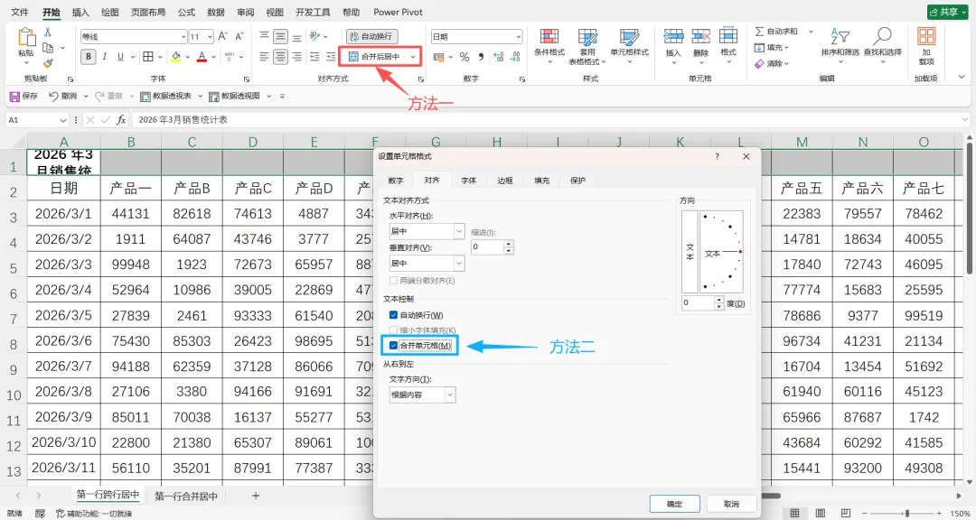 🔹合并居中