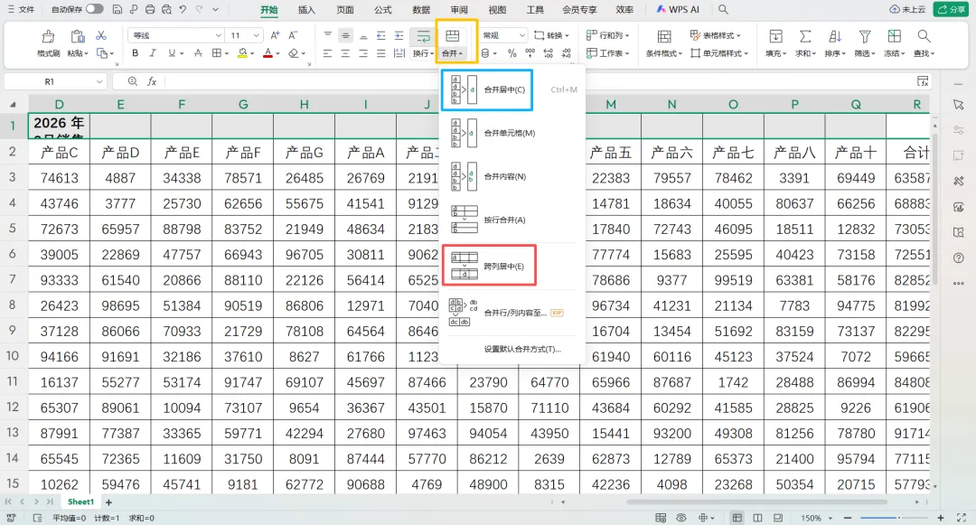 跨列居中仅改变显示效果,不破坏表格结构,所有单元格保持独立;合并后居中则通过物理合并单元格来实现,将多个单元格合并为一个大的单元格。日常处理数据,合并单元格会对排序、筛选、函数公式造成影响,数据统计建议优先使用跨列居中。