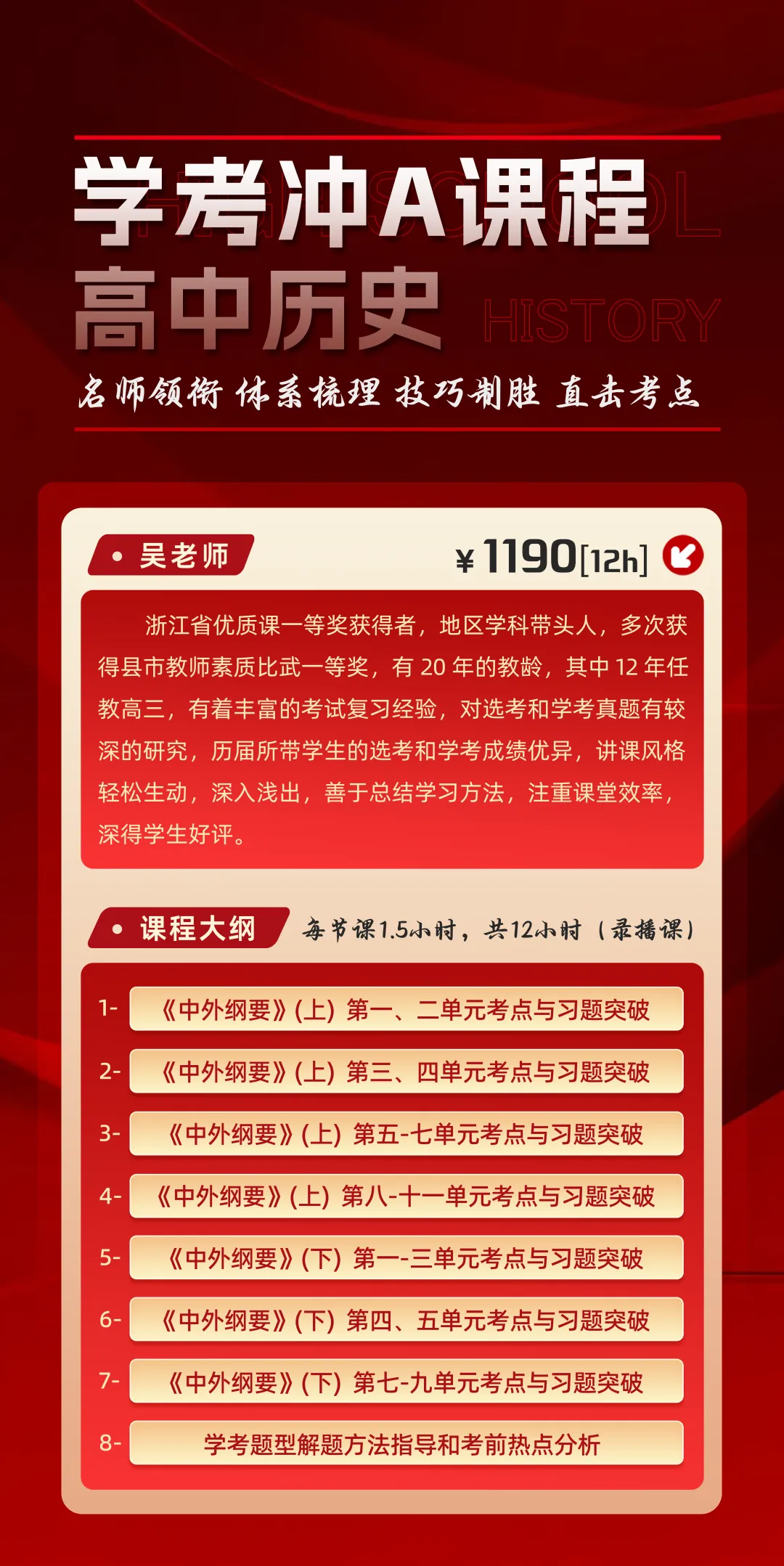 学考冲A有方法,学考中主要考‘中外历史纲要’,考点解析(部分)已为大家准备好,扫描二维码即可观看!想听全部课程,可添加小助手咨询!