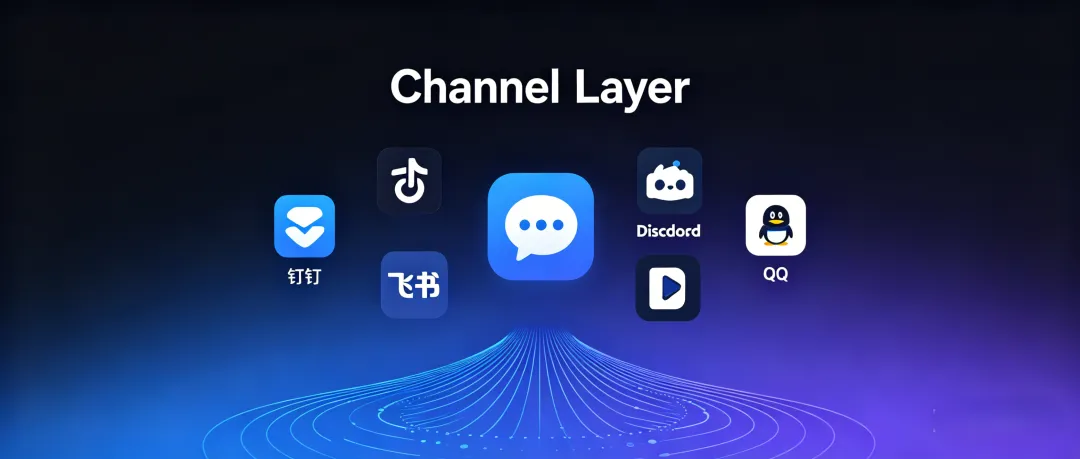 内置渠道:Console、钉钉、飞书、Discord、QQ、iMessage等 -