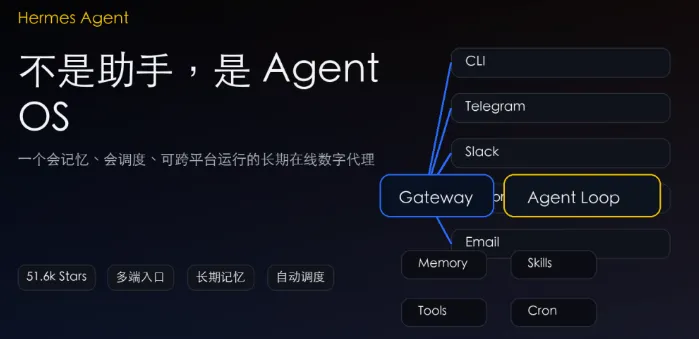 Hermes Agent是美国一个叫Nous Research的团队开发的开源AI助手,2026年2月正式开源。